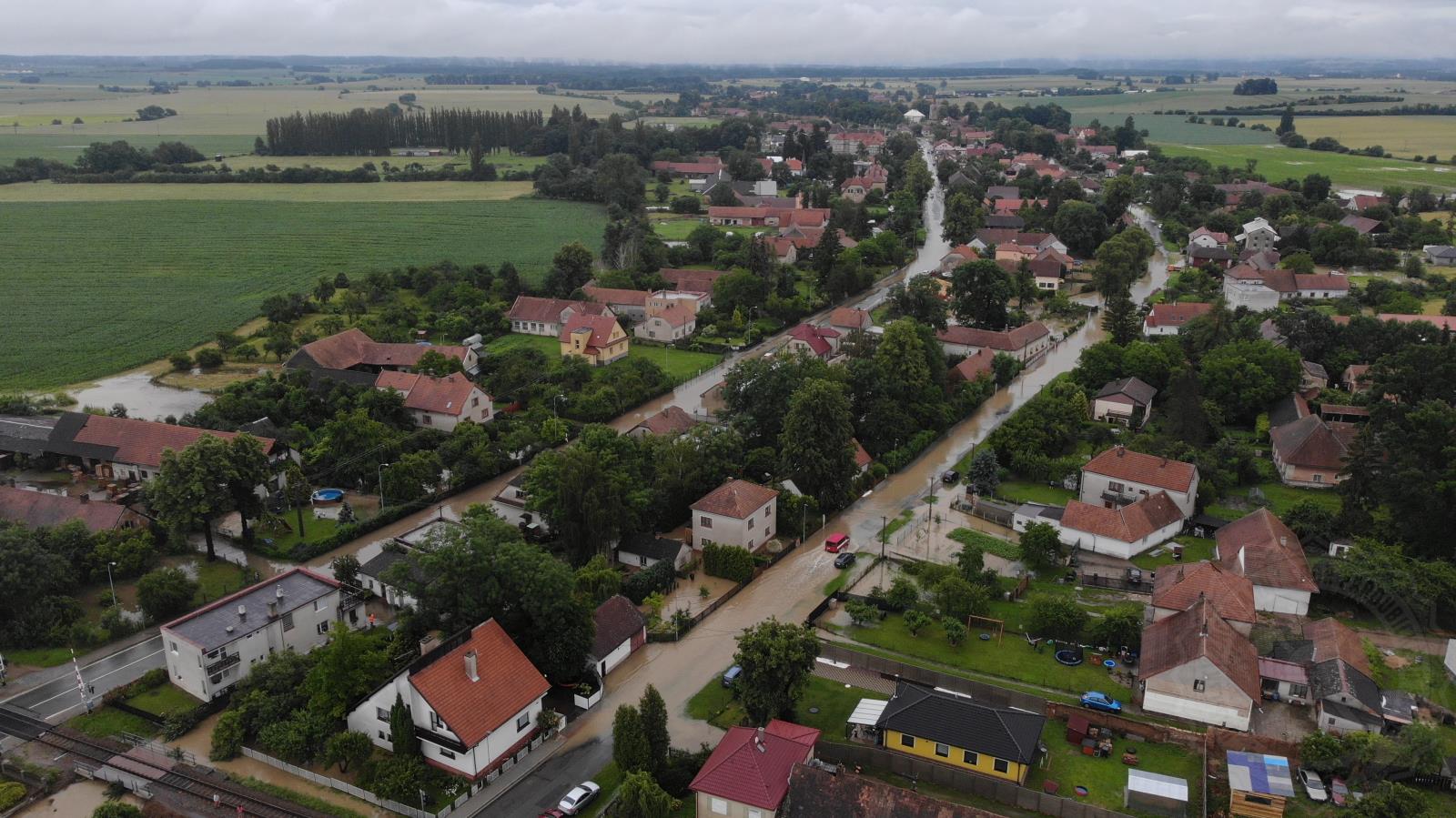 Na silnici ze Starých Holic směrem k hlavní silnici I/35 se vytvořila laguna a silnice byla zaplavena, chvílemi byla vozovka zcela neprůjezdná.