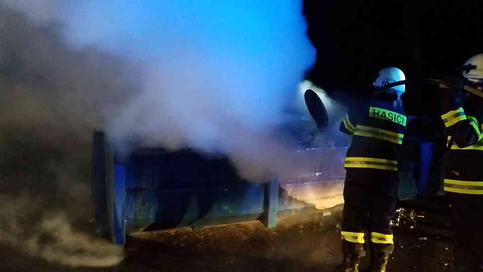 V 1.18 hodin hasiči likvidovali požár kontejneru v České Třebové.