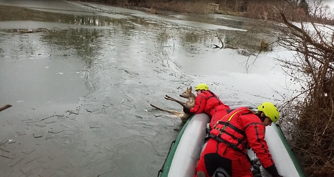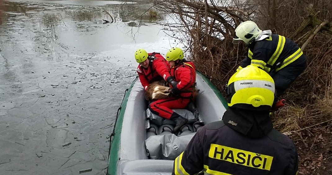 V první den Nového roku 2022 jsme zaznamenali 34 událostí. Jednalo se zejména o technické pomoci a požáry popelnic od dalších posilvestrovských ohňostrojů. Na kontě už máme také jednu záchranu srnky v Brozanech na Pardubicku. Srnka se propadla pod tenkým ledem rybníku. Hasiči oblečeni do speciálních obleků na člunu dopluli k srnce, která byla velmi podchlazená. Srnku jsme pořádku převezli na břeh. Na místo jsme povolali městskou policii, aby srnu převezli na veterinární stanici.