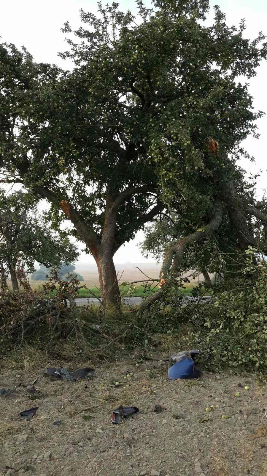 Řidiče, který s vozem přerazil strom a skončil v poli, byl v šoku a bezvědomí, vyprostili hasiči z Lanškrouna