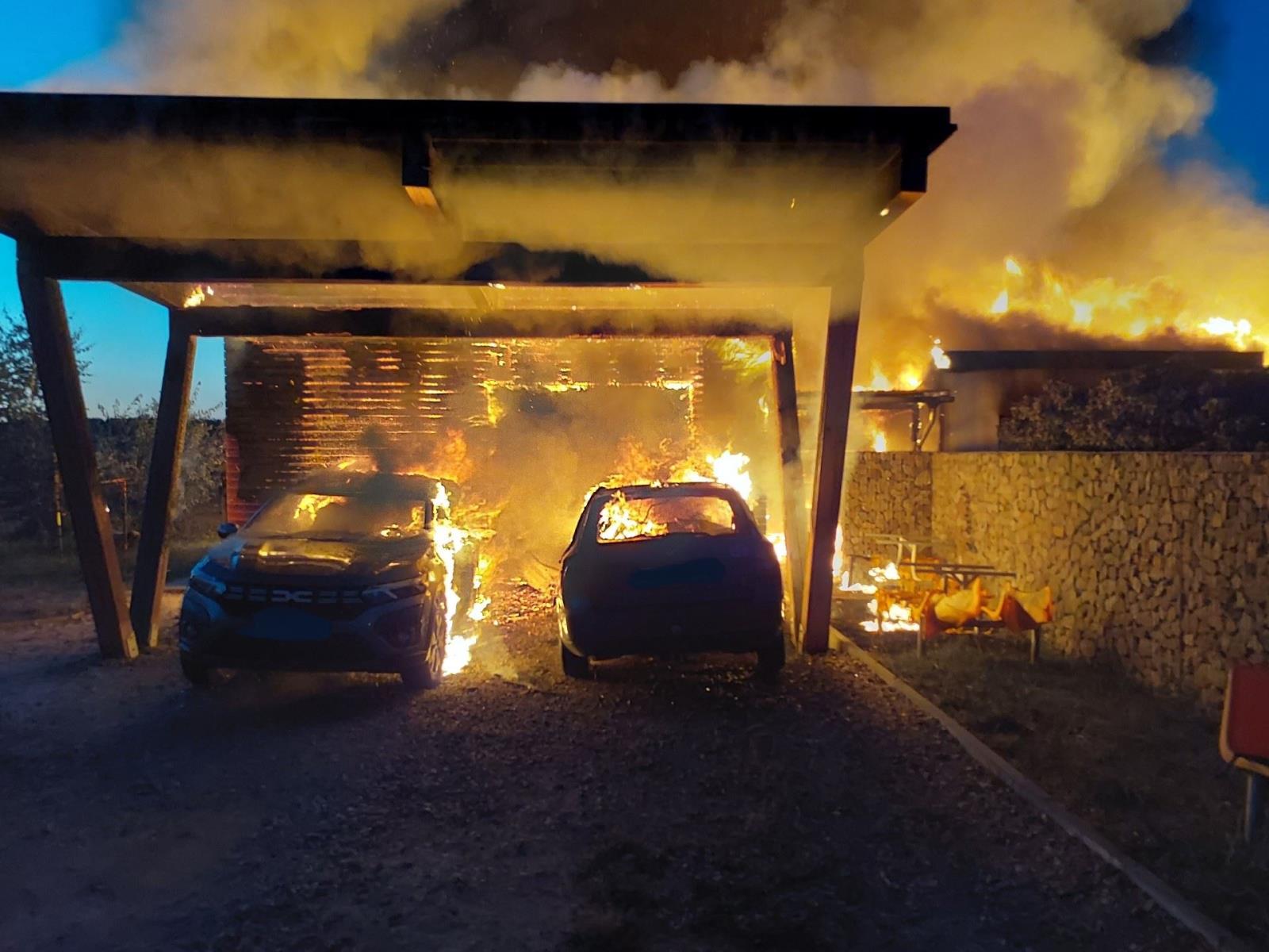 Krátce po čtvrté hodině ranní obdrželo operační středisko hasičského záchranného sboru hlášení o požáru v obci Borek. Hořel přístřešek garáže s dílnou, který už při příjezdu prvních jednotek stál v plamenech. Oheň se velmi rychle šířil a zasáhl také sousední garáž i přístřešek určený k uskladnění zemědělské techniky.