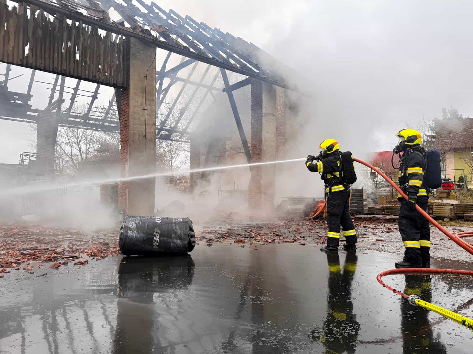 Hasiči po příjezdu zahájili hasební práce a soustředili se na lokalizaci a zabránění dalšího šíření požáru. Nasazeno bylo pět vodních proudů, které umožnily intenzivní zásah proti plamenům. Díky rychlé reakci se podařilo dostat požár pod kontrolu a ochránit značné majetkové hodnoty.
