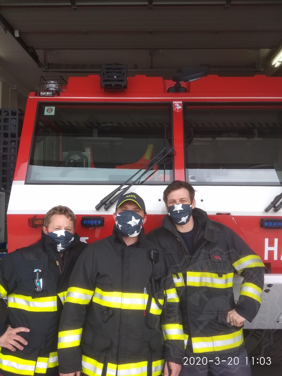 Ručně vyrobené roušky pro profesionální hasiče převzal od Radky Houdkové a jejich kamarádek z Oucmanic také velitel stanice Vysoké Mýto Milan Vincenc: „Aby měli chlapi na cestu do služby a domů,“ doplňuje Vincenc.