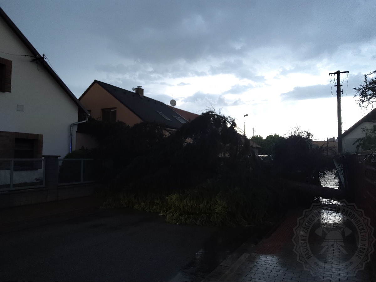 Chrudim zásahy na 21x spadlé stromy, 1 x čerpání vody, 4 x zásah na nebezpečné stavy, tedy spadlé dráty elektrického vedení, odstranění vody, která natekla do domu