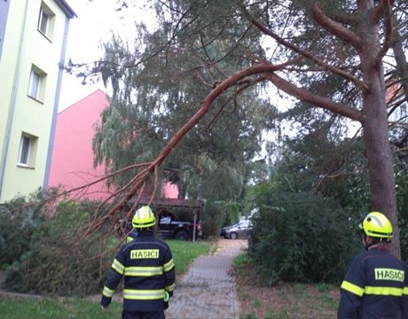 Silný vítr zaměstnal hasiče v Pardubickém kraji, evakuovali i cestující z vlaku