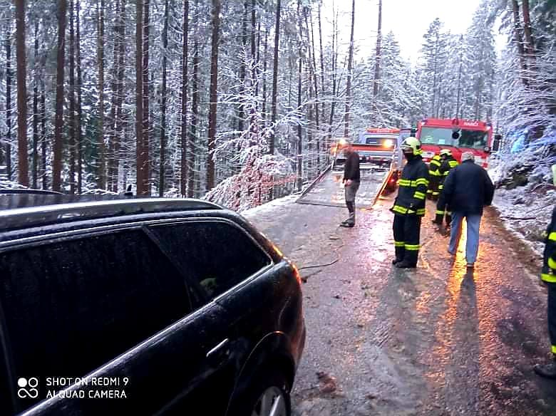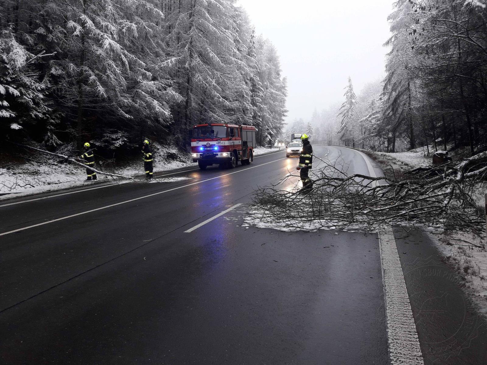 Během dnešního dne evidujeme také několik zásahů na zlomené větve, které nevydržely nápor mokrého sněhu a spadly na komunikace, které zatarasily.