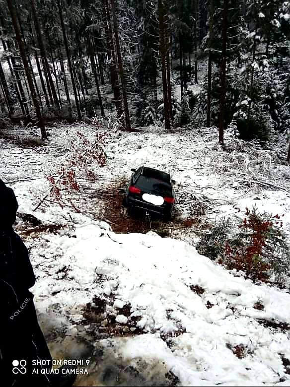 Ve Zderazi hasiči vyprostili auto, které skončilo jízdu ve svahu. Pomocí navijáků byl automobil vyproštěn.