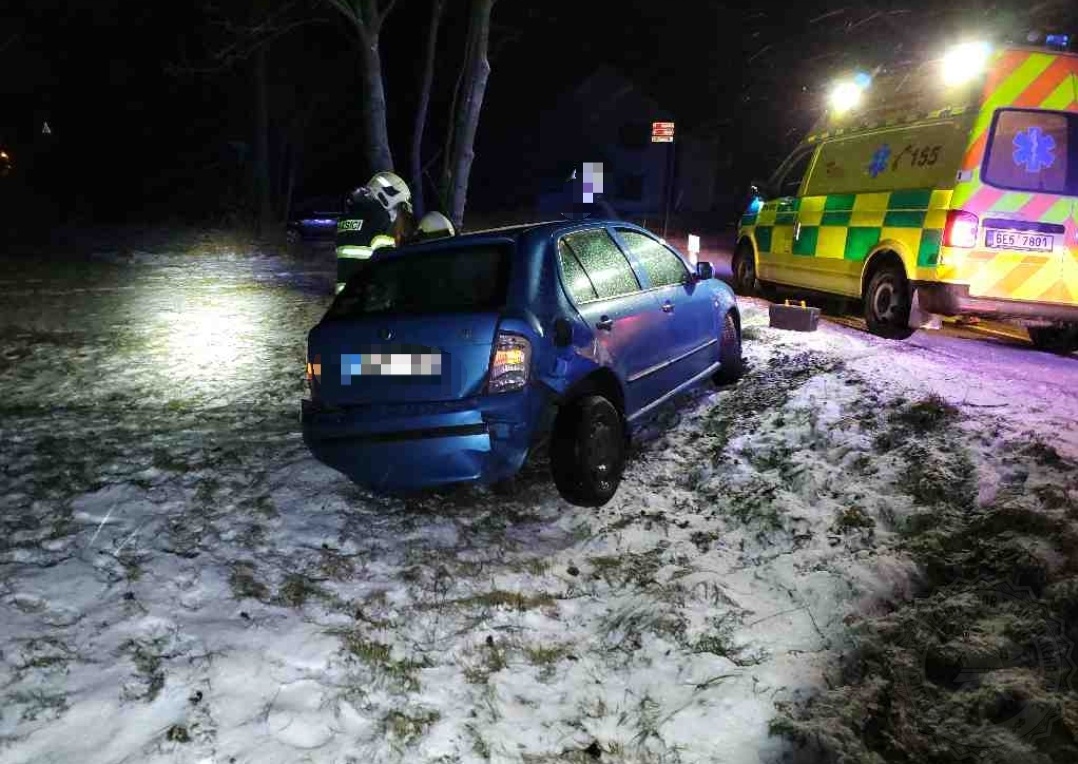 V Dlouhoňovicích došlo k nehodě dvou vozidel. Řidička byla z jednoho vozu předána do péče zdravotníků. Vozy skončily mimo silnici a hasiči je postupně z příkopů vytáhli.