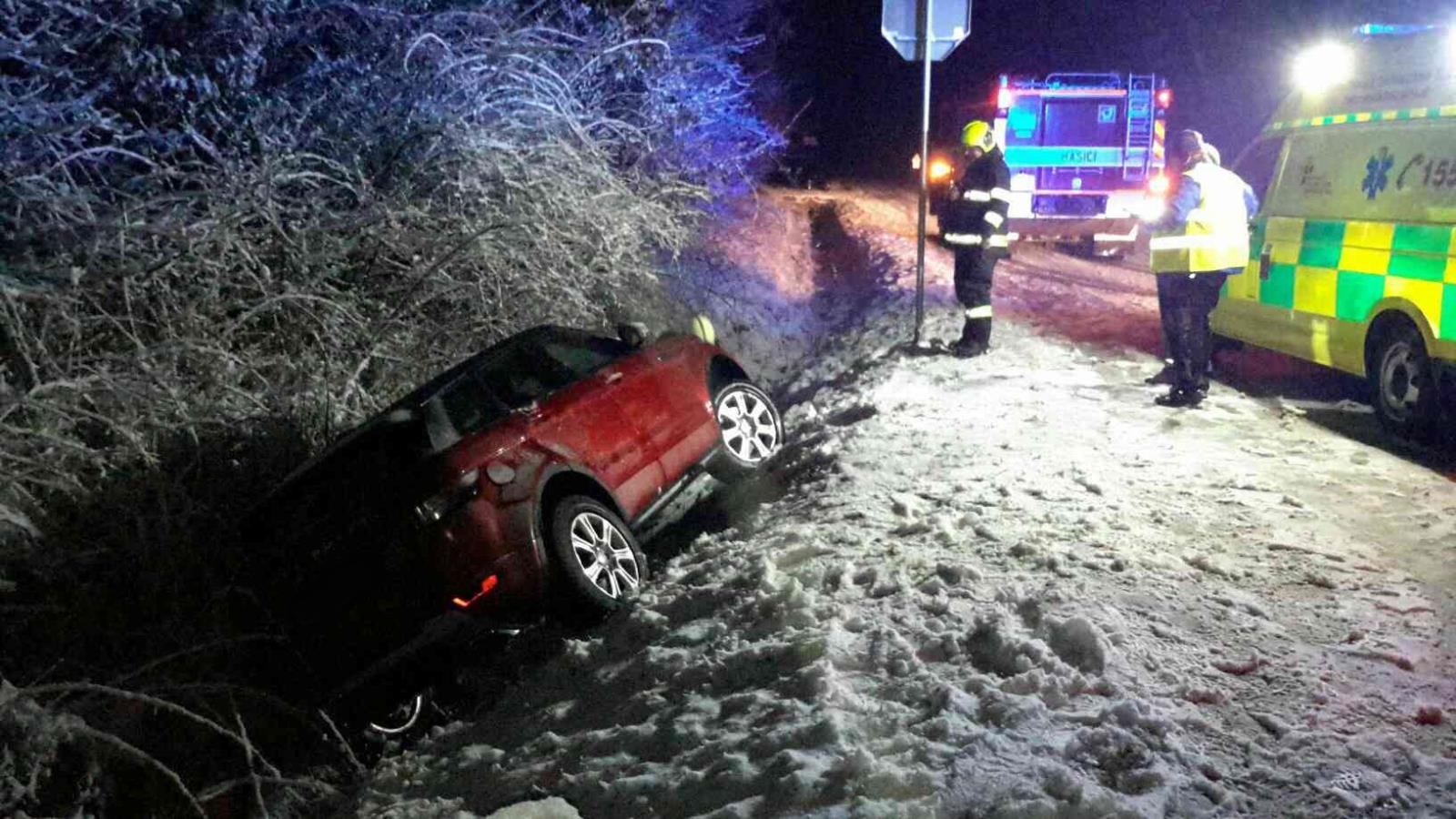 V Křižanovicích zasahovali v 6.36 hodin hasiči u zapadlé sanity, která byla bez pacienta. Sanitku hasiči vytáhli a na místo nechal velitel zásahu poslat i správu a údržbu silnic k zajištění posypu velmi kluzké vozovky. V Korouhvi v 7.20 hodin vytahovali hasiči z příkopu osobní automobil. Kolize se obešla bez zranění.
