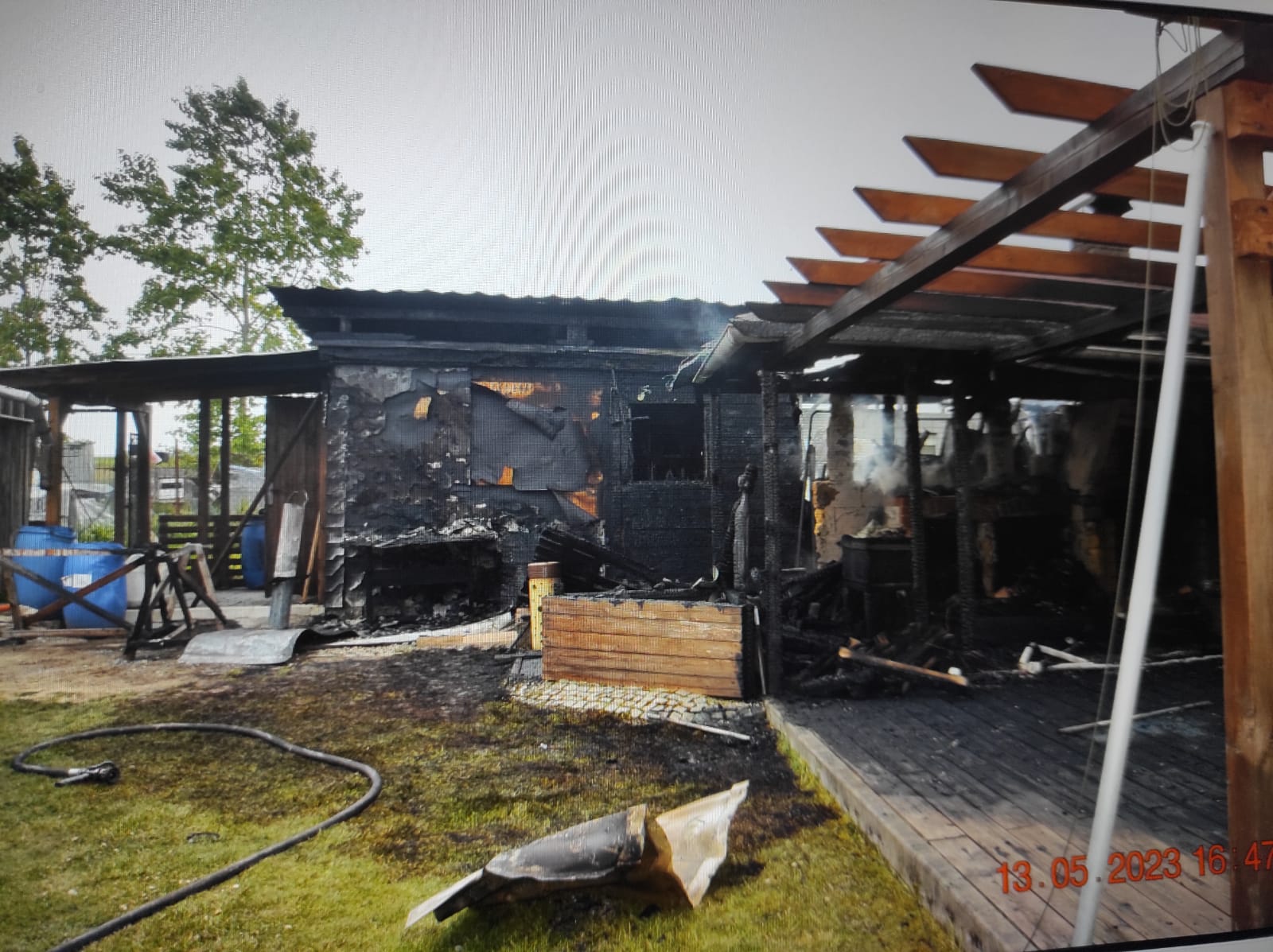 Ve Svitavách v sobotu 13. května odpoledne hořela pergola a unimo buňka. Na místě zasahovaly čtyři jednotky hasičů.