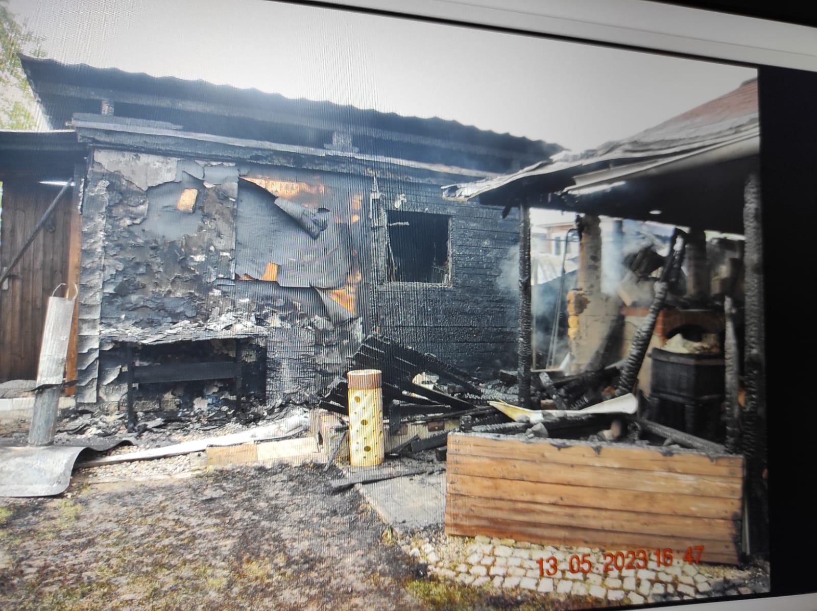 Majitel s rodinnými příslušníky byl na chatě. Od časného rána udili maso, a topili v udírně až do 13. hodiny. Ještě kolem 15. hodiny byla celá udírna, umístěná v pergole, hodně teplá. Lidé seděli v chatě a najednou vypadl elektrický proud, a tak vyšli z chatky, že zpět „nahodí“ pojistky a v tu chvíli zjistili, že celá pergola a unimobuňka jsou v plamenech.