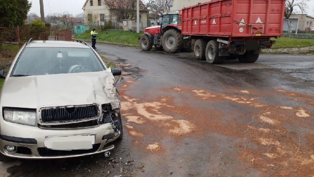Střet osobního vozidla s traktorem