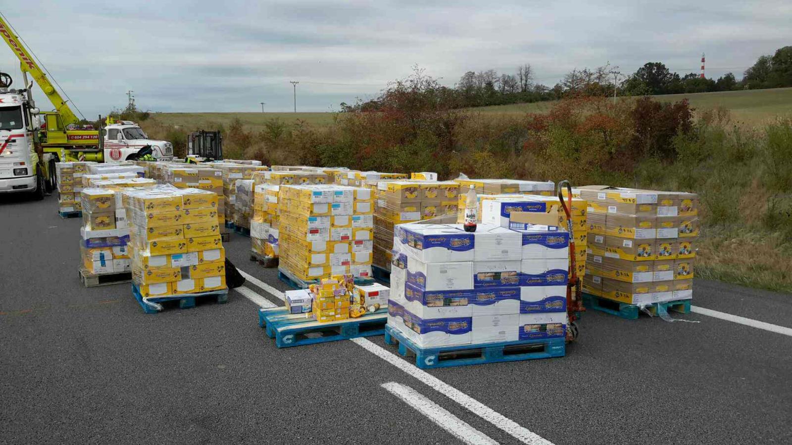 Sušenky se ocitly po nehodě v příkopu