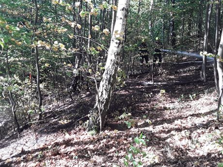 Požár hrabanky a lesního porostu... Dopravní nehoda dvou motorkářů...
