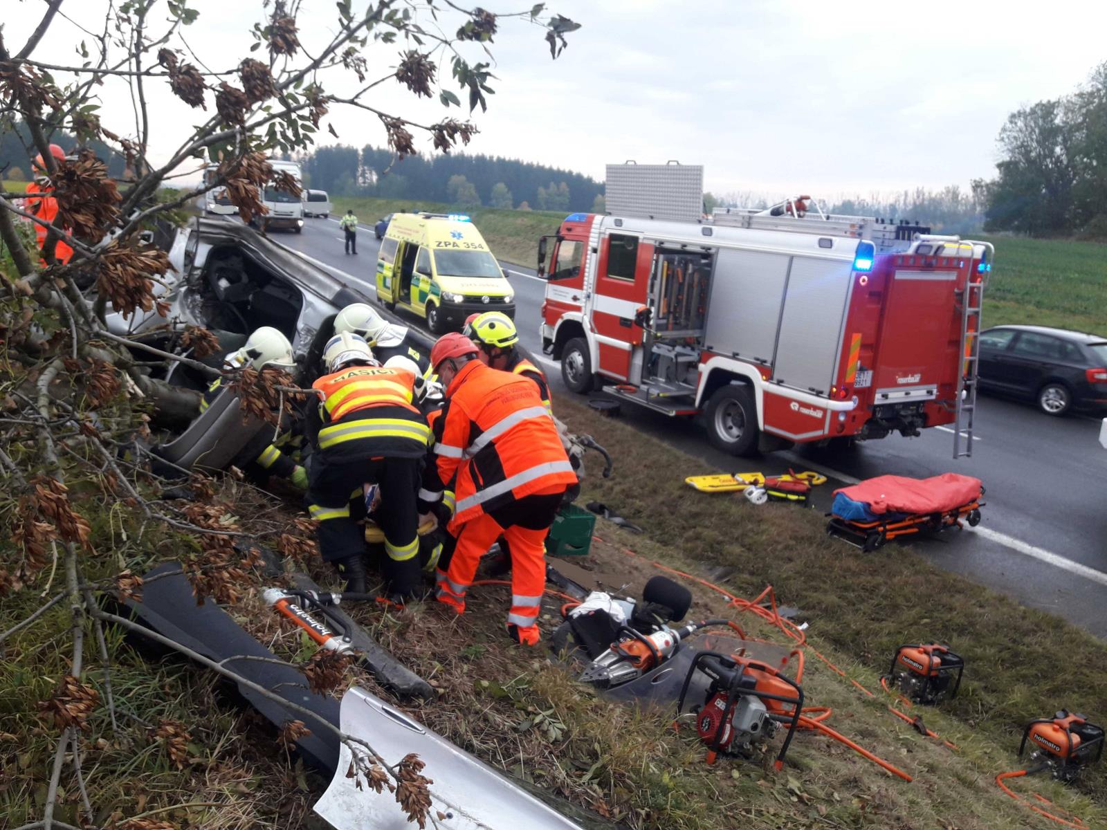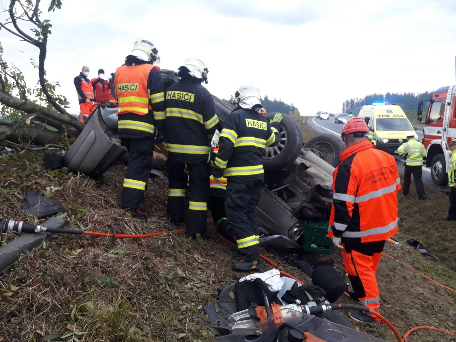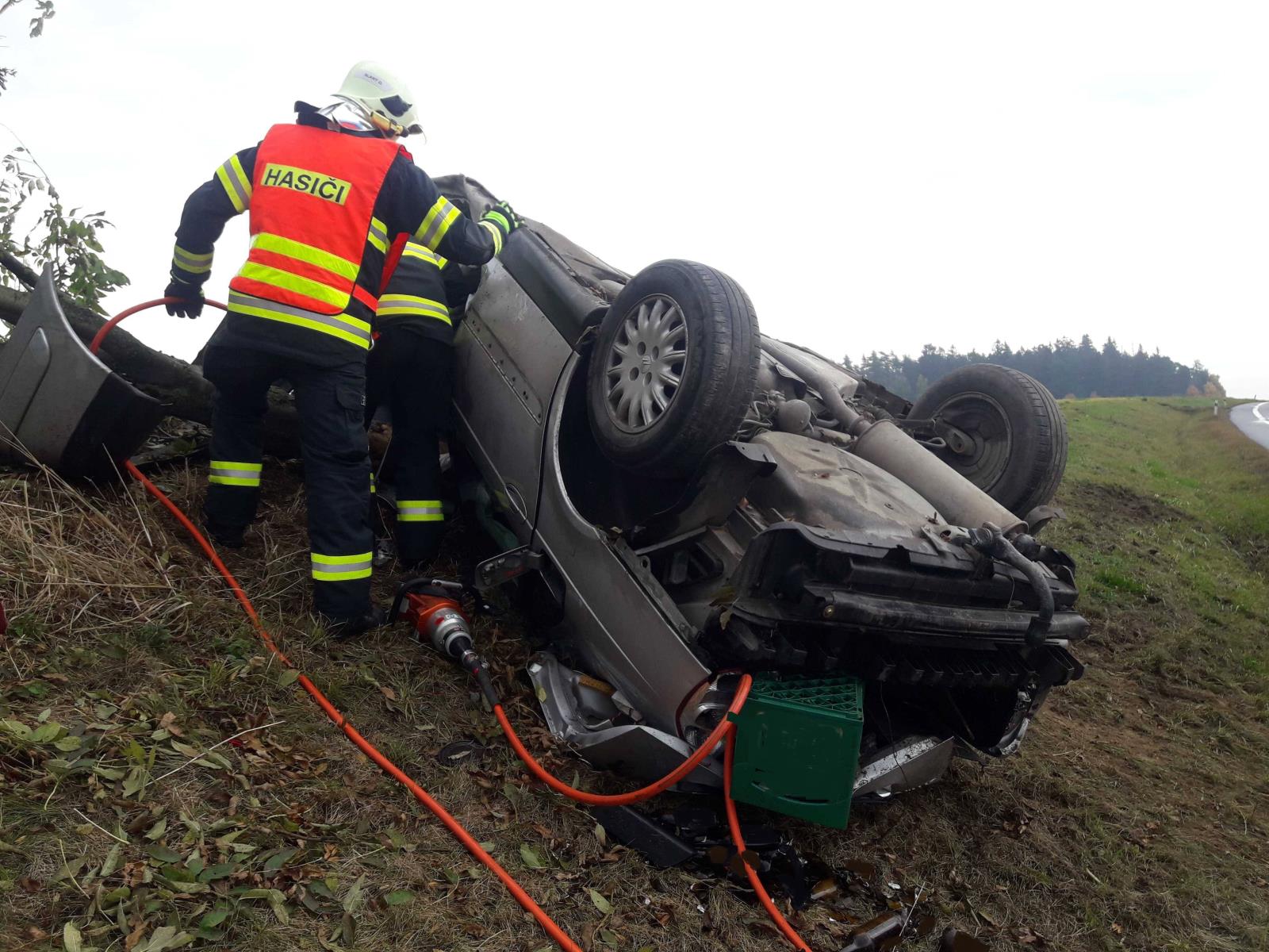 Na místo spěchaly všechny složky integrovaného záchranného systému. Osobní automobil skončil mimo komunikaci v příkopu a jedna osoba v něm zůstala zaklíněna. Hasiči tak museli muže vyprostit pomocí hydraulického vyprošťovacího zařízení a poté předat zdravotníkům do péče. Zraněný byl následně transportován vrtulníkem do nemocnice.