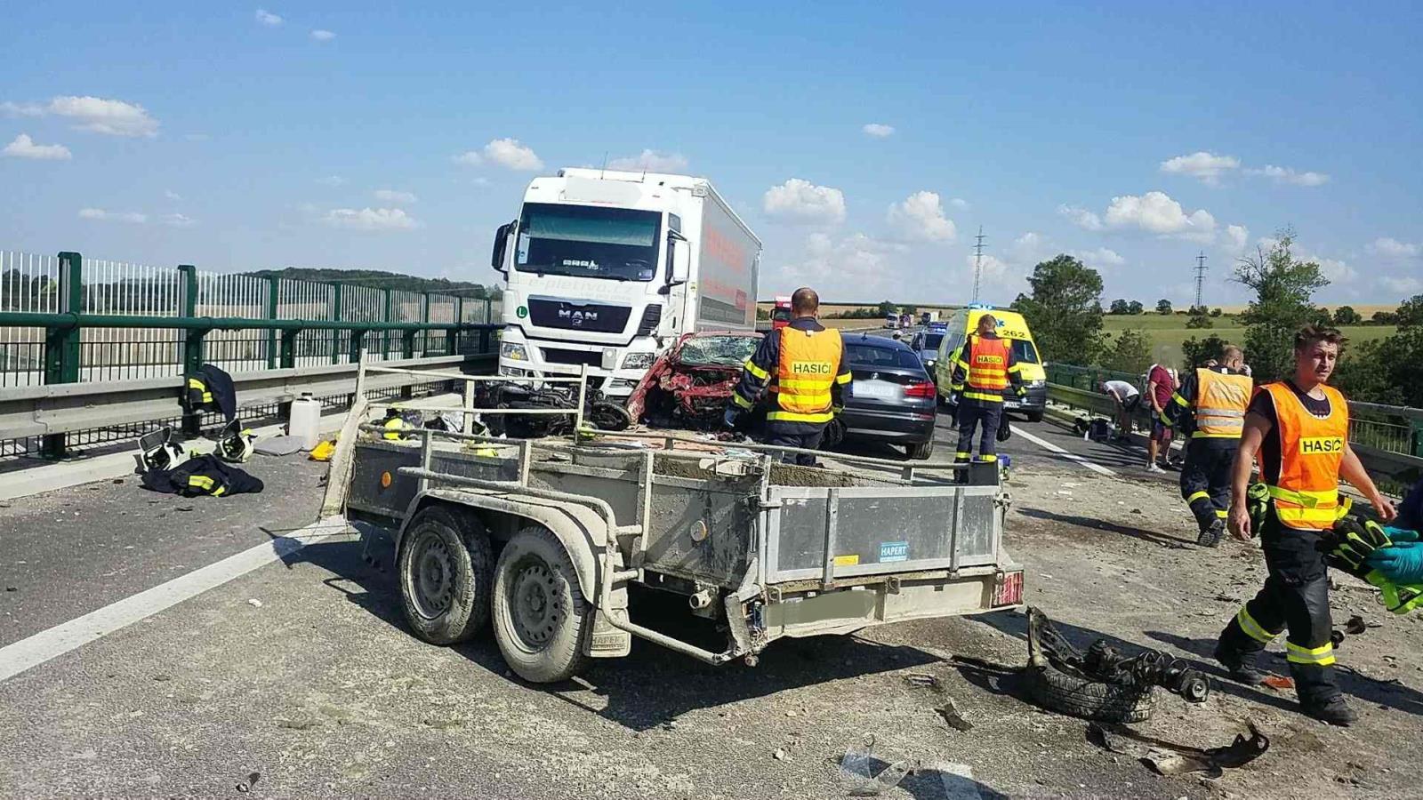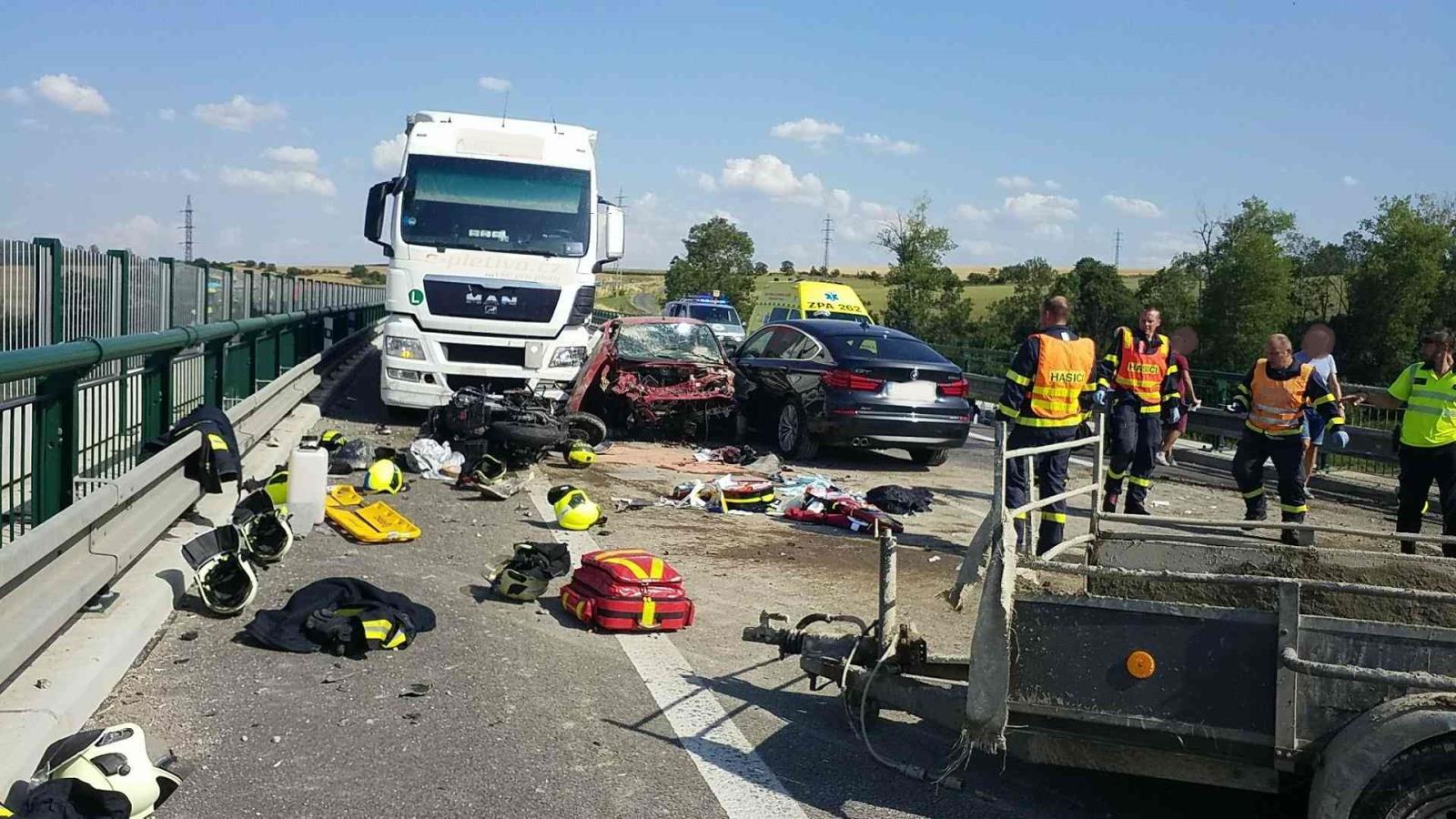 Celkem pět dopravních prostředků se střetlo na obchvatu Chrudimi. Řidič osobního vozidla Škoda Fabia vezl na vleku namíchanou čerstvou betonovou směs. Podle velitele zásahu se pravděpodobně při vysoké rychlosti vozík rozkýval a utrhl se. Postupně tak došlo k nehodě motocyklu a dalších dvou osobních vozidel a nákladního vozu.