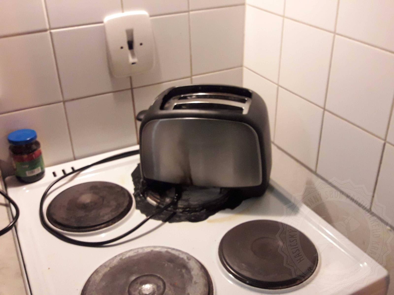 Dvojice odložila topinkovač na plotýnku, ale zřejmě se už nemohla dočkat až se zachumlá do peřin, protože ani jeden nezaregistroval, že je stále zapnutá.
