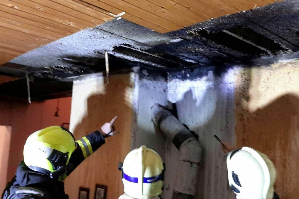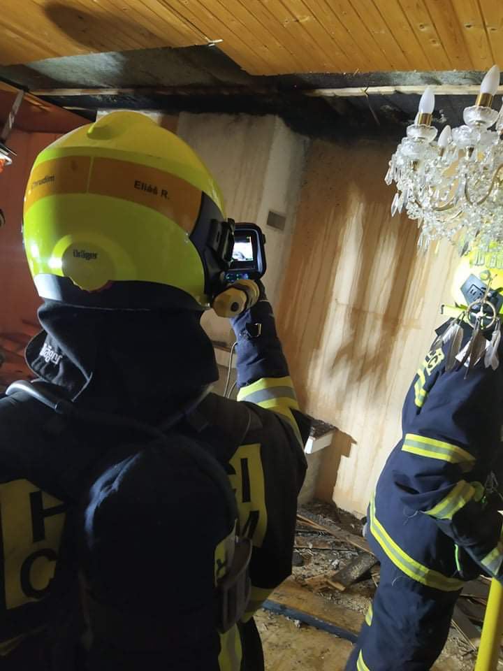 Hasiči v uplynulých dnech likvidovali požár stropní konstrukce u krbu v rodinném domě v Chrudimi. Hasiči museli nejprve požár uhasit, ale to nejhorší je teprve čekalo. Bylo totiž nutné rozebrat stropní konstrukci, která byla ze štěpkocementových desek a před požárem také z krásného palubkového podbití. „Tady byla s největší pravděpodbností příčinou vzniku požáru dlouhodobá tepelná degradace nesnadno hořlavého materiálu ve stropní konstrukci a následně vznícení dřevěných částí a prachu,“ upřesňuje příčiny požáru se škodou, která byla předběžně vyčíslena na půl milionu korun, vyšetřovatel hasičů por. Miloš Kratochvíl, DiS.