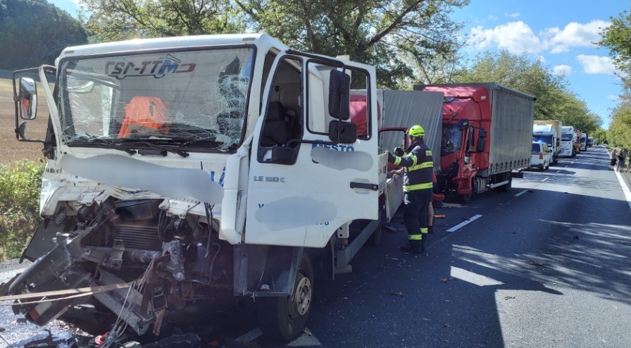 K tragické nehodě vyjížděli hasiči ve středu 20. září: Jednalo se o střet tří nákladních automobilů a dodávky. Jedna osoba zůstala...
