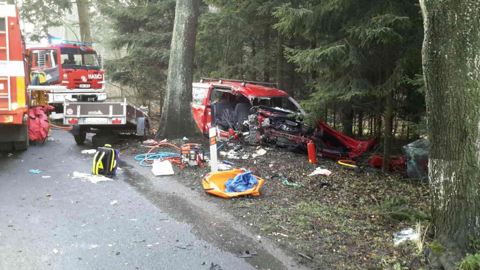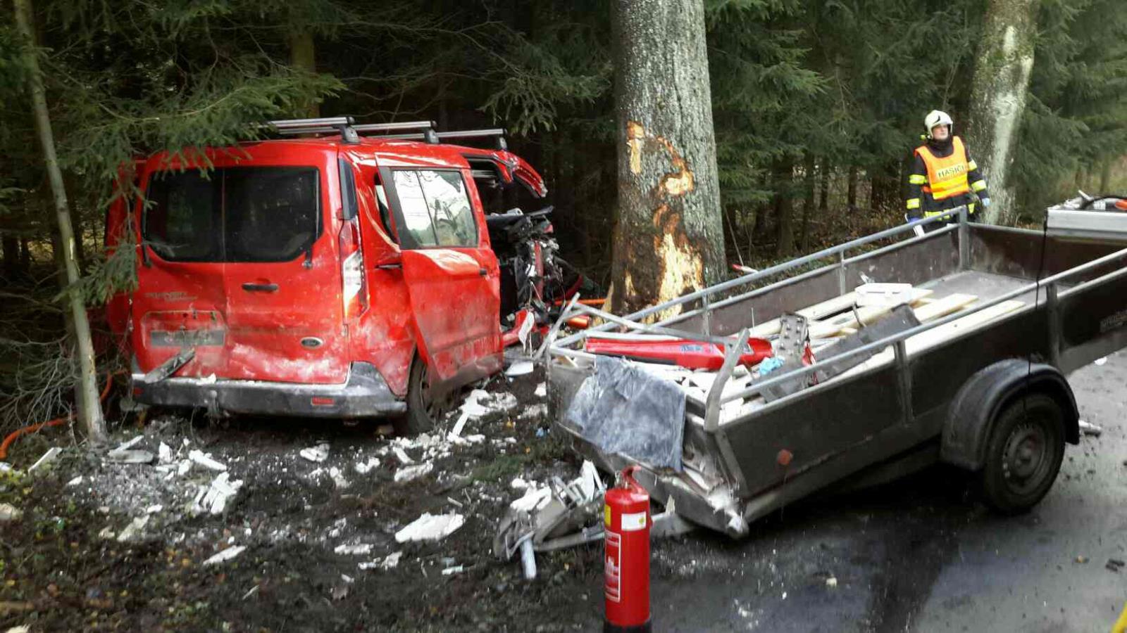 Osobní automobil s přívěsným vozíkem na silnici z Bystrého na Poličku narazil do stromu. Ze zcela zdemolovaného vozu museli hasiči postupně vyprostit celkem tři osoby. Jedna osoba musela být resuscitována, ale lékař poté konstatoval smrt. Vyproštěné zraněné osoby byly umístěny do vakuových nosítek.