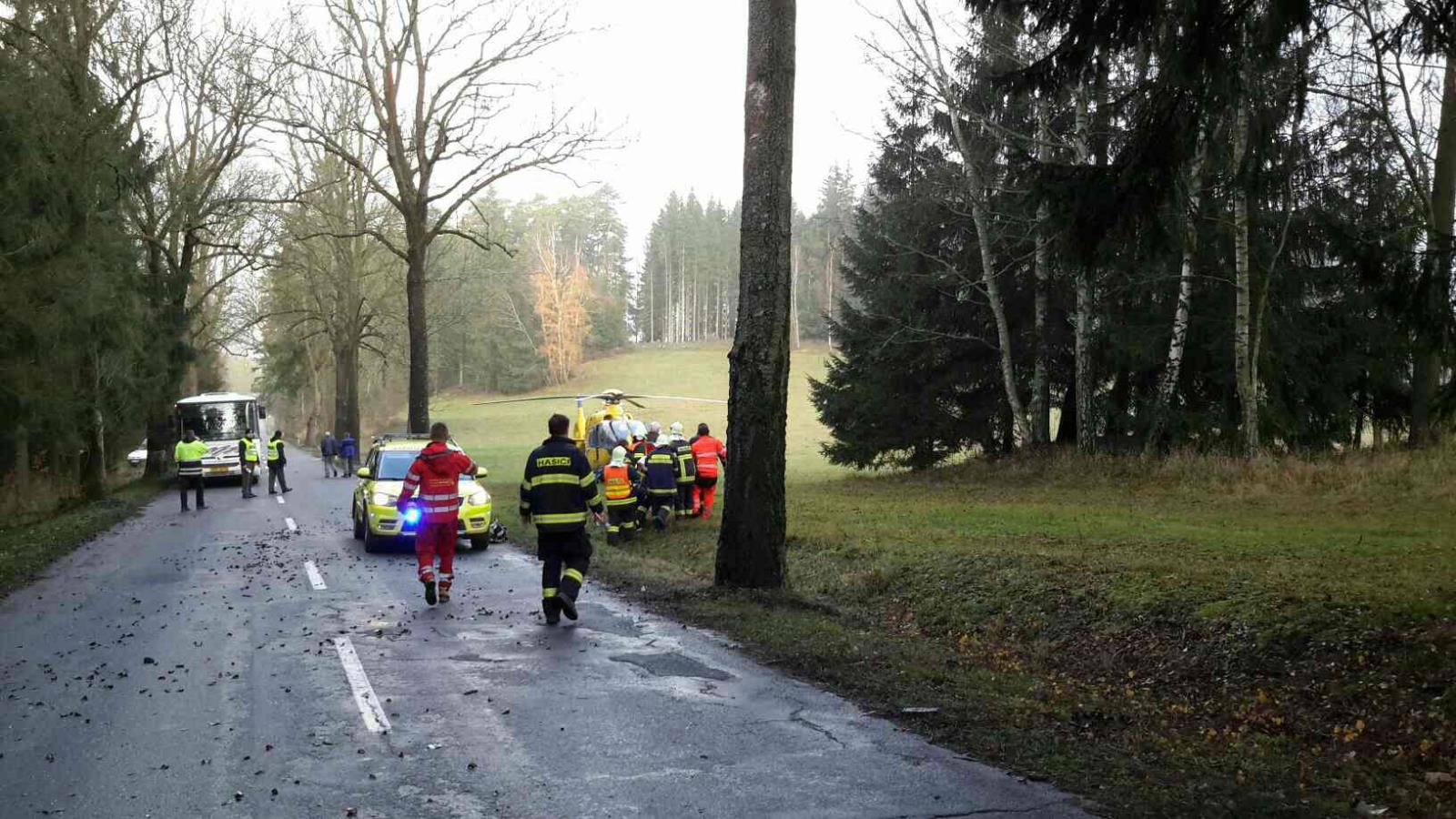 Na místo přiletěl i vrtulník, který transportoval jednu zraněnou osobu do nemocnice. Druhý zraněný byl sanitním vozem převezen do nemocnice. Hasiči dále zajistili vozidlo proti požáru a úniku provozních náplní.