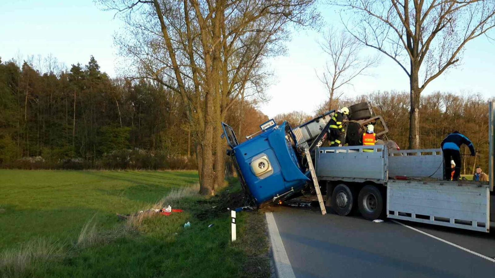 K nehodě dvou kamionů na silnici I/35 k Jaroslavi vyjížděli ve čtvrtek 20. dubna v 18.49 hodin profesionální hasiči z Holic.