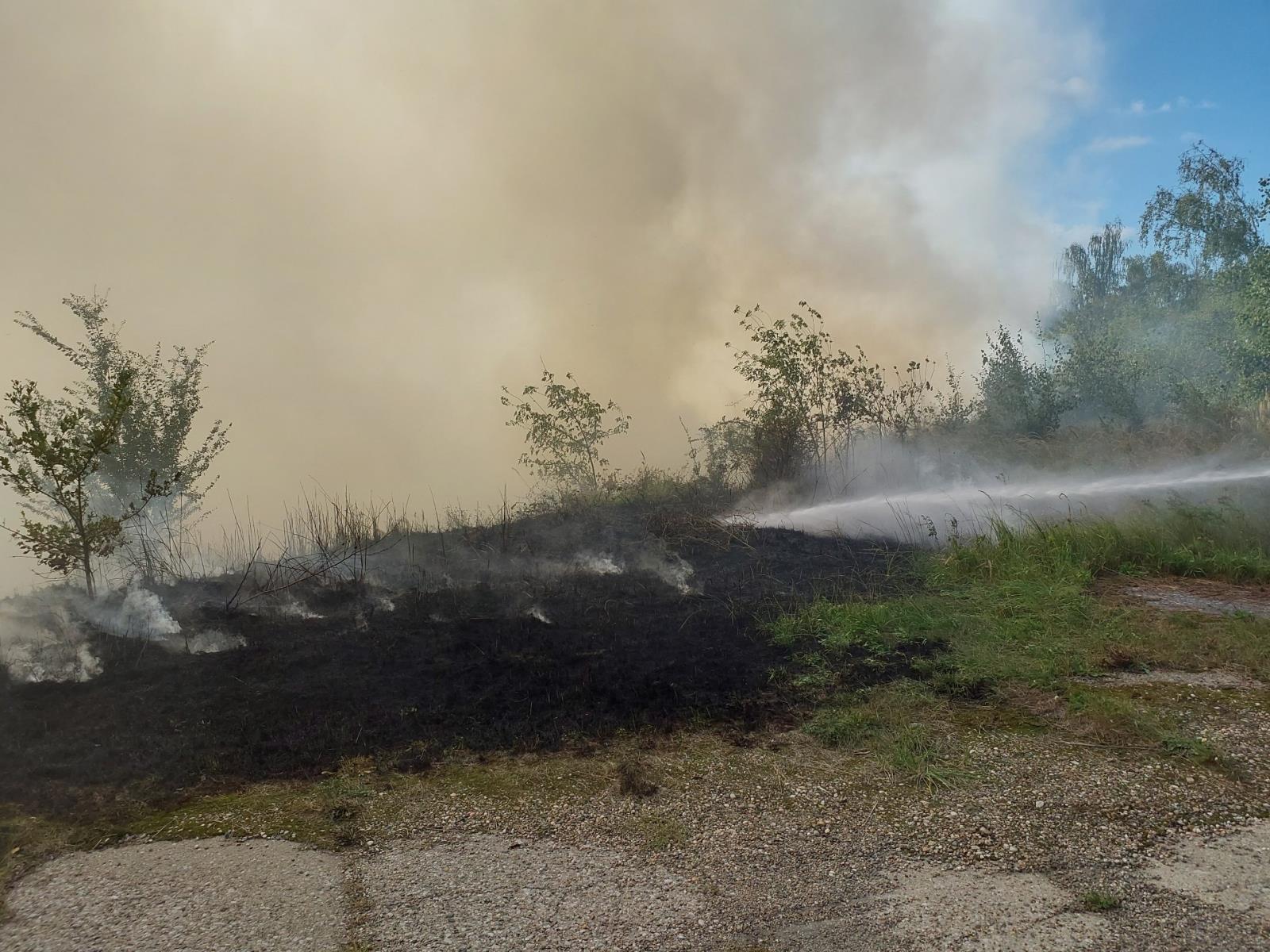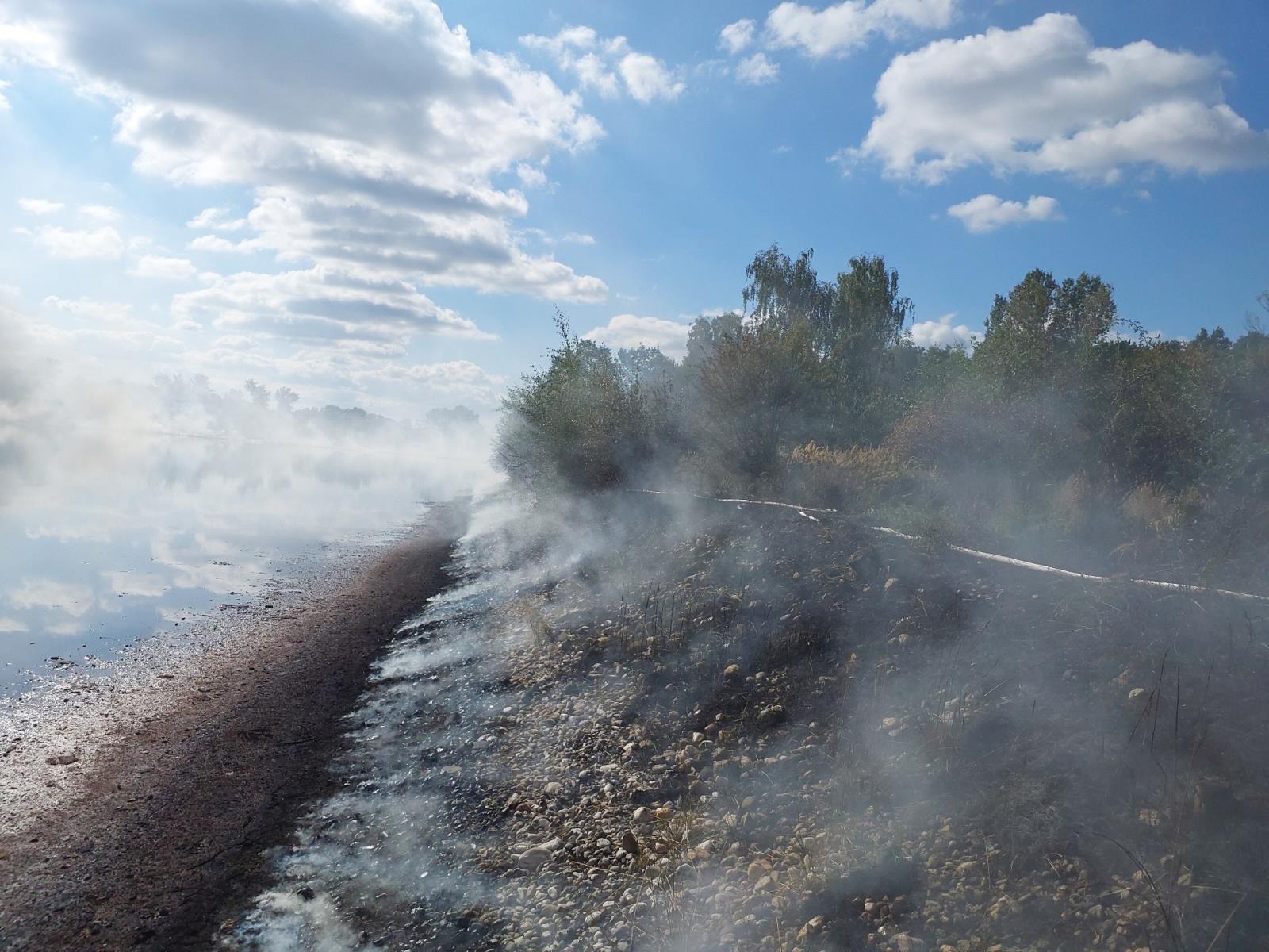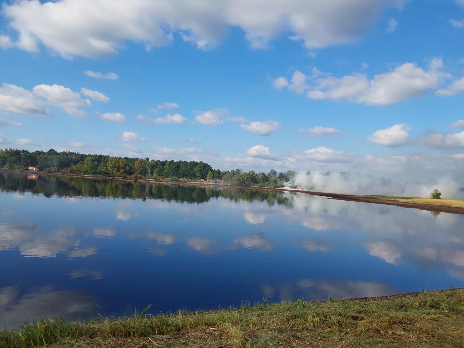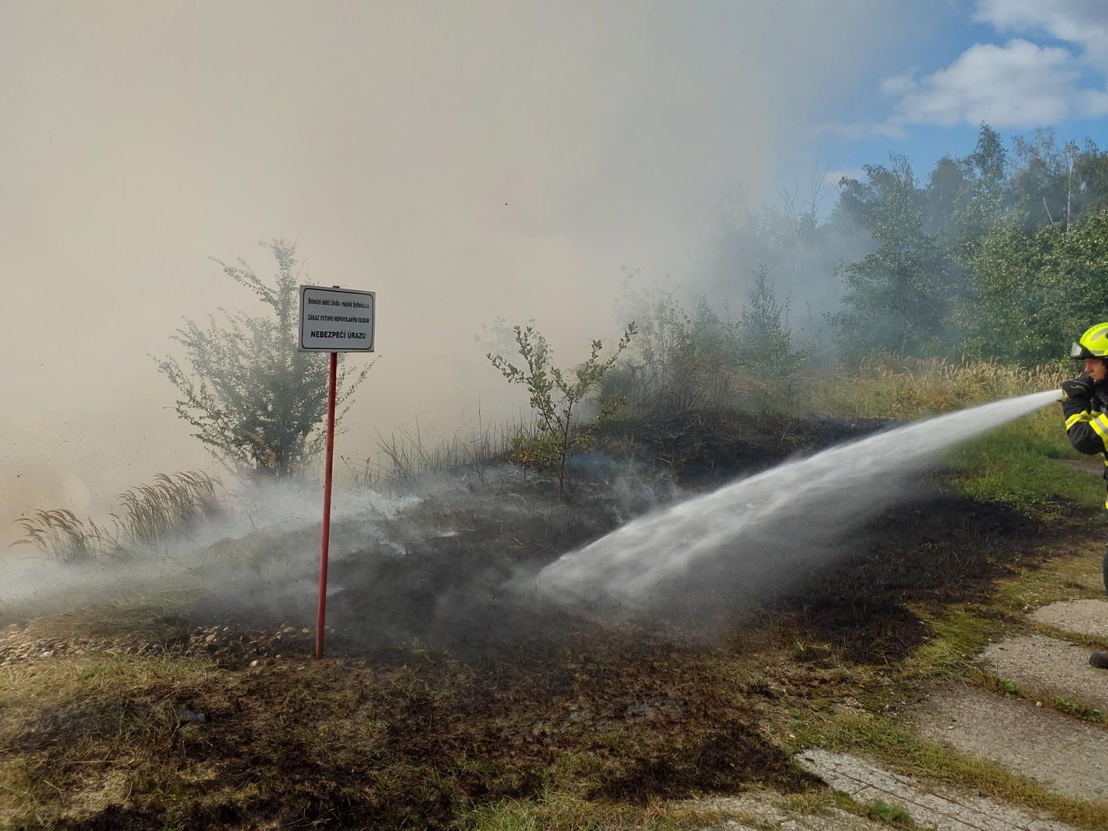 U Rybitví hořel břeh odkalovací nádrže