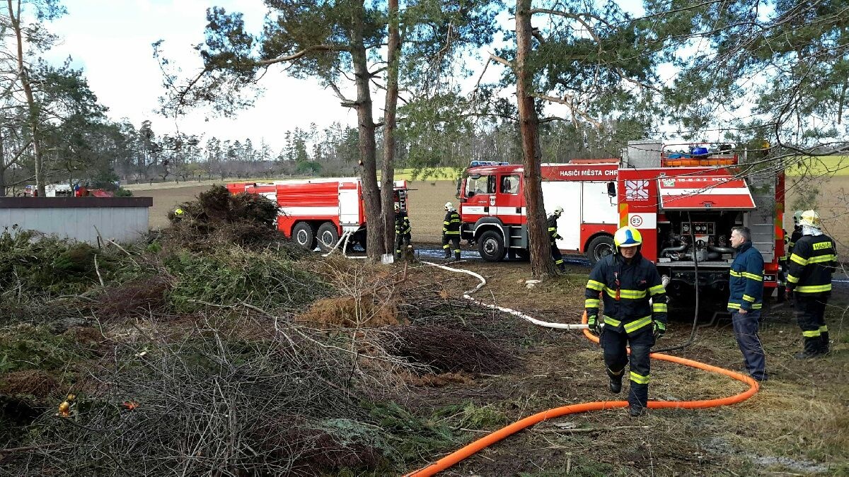 Pracovníci obce města Slatiňany pálili klestí, ale bohužel z důvodu silného větru se požár rozšířil a začala hořet skládka o rozměru 15 x 20 m. Na místě zasahuje pět jednotek hasičů – profesionální z Chrudimi a dále dobrovolné z Chrudimi, Slatiňan, Chrasti a Hrochova Týnce. Hasiči se po celou dobu zásahu snaží o to, aby se požár nerozšířil na nedaleký, asi 40 metrů vzdálený seník. Hasiči museli zřídit čerpací stanoviště u nedalekého rybníka a vodu na místo zásahu dovážet kyvadlově. Velitel zásahu si na místo nechal povolat bagr, kterým je skládka postupně rozhrnována a následně prolévána vodou. Škoda nebyla dosud vyčíslena.