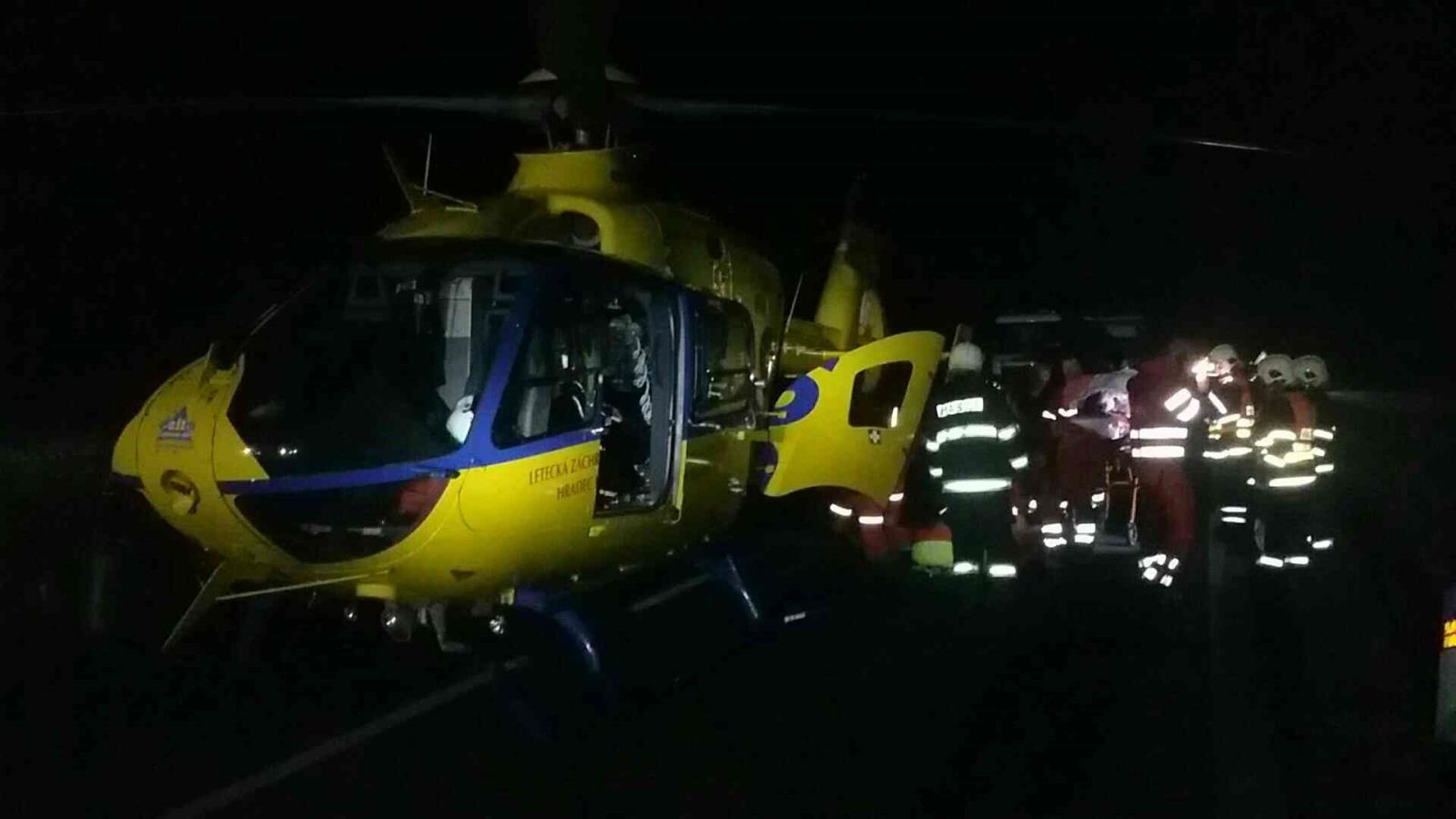 Na žádost záchranné služby hasiči zajistili a nasvítili místo pro přistání záchranářského vrtulníku na komunikaci, který transportoval zraněného do nemocnice.