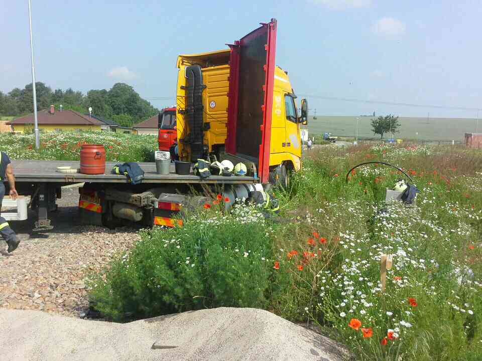 Dnes v pondělí 4. června 2018 zasahovali hasiči z Chrudimi u obce Bylany v 9.23 hodin u úniku nafty z havarovaného nákladního vozidla, které si o obrubník prorazilo nádrž.