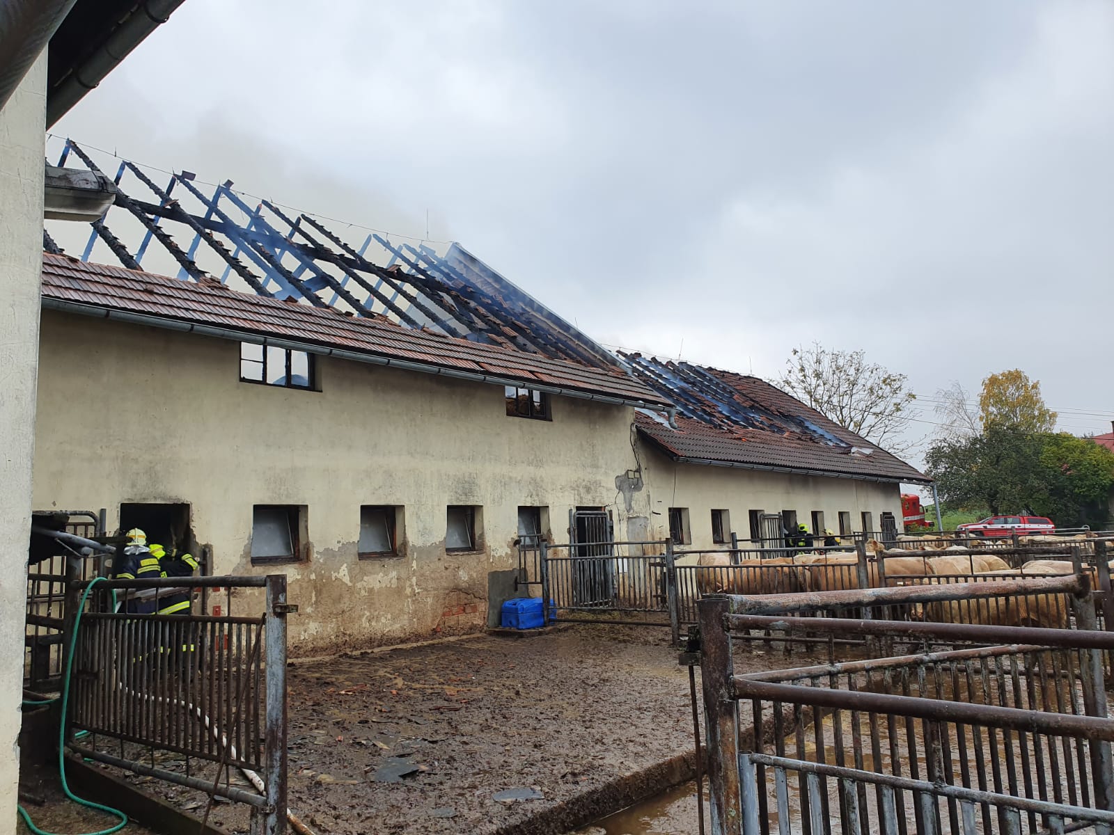 Od nás už víte, že velmi náročný zásah pokračoval celou neděli a některé jednotky hasičů jsou na místě i nyní. Uvnitř byl ustájen dobytek – asi 25 kusů býků a 25 ks krav. Všechna zvířata byla bezpečně umístěna v jiné stáji.