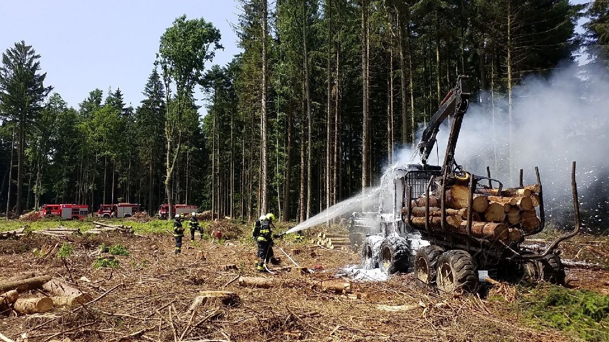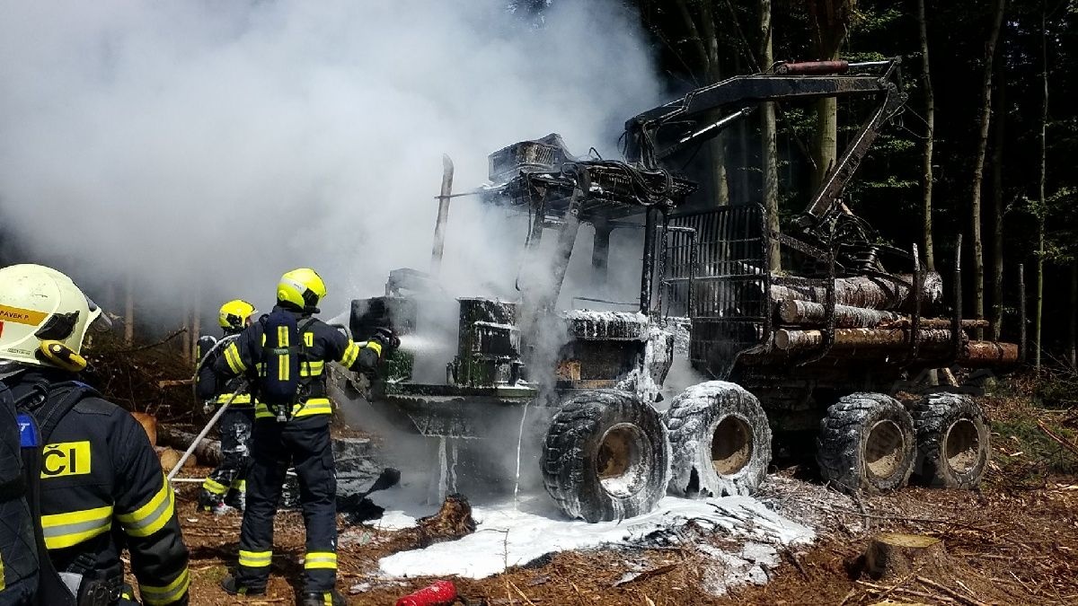 V Bojanově hasiči hasili požár lesní vyvážečky