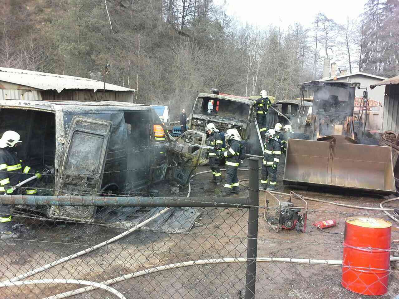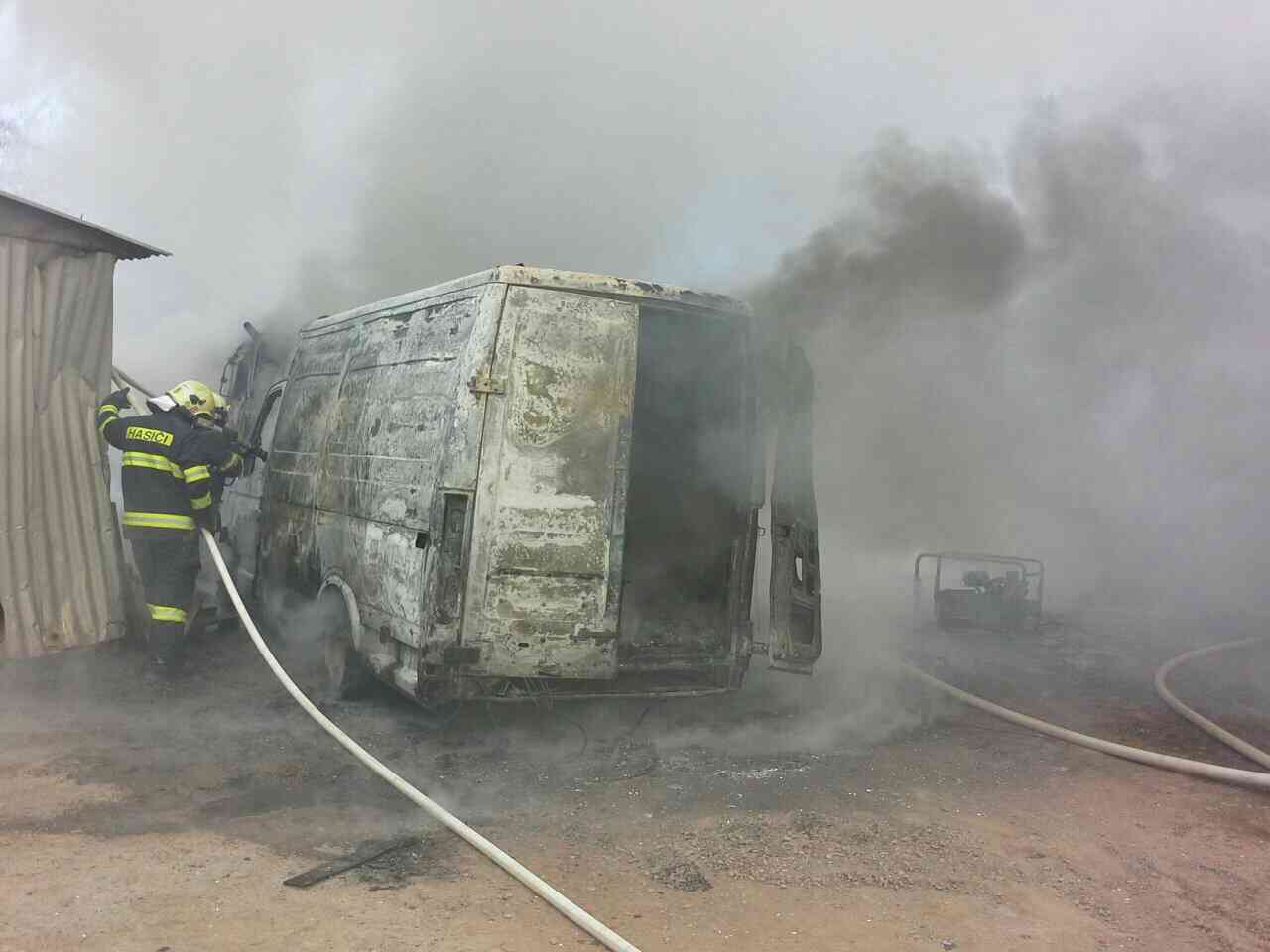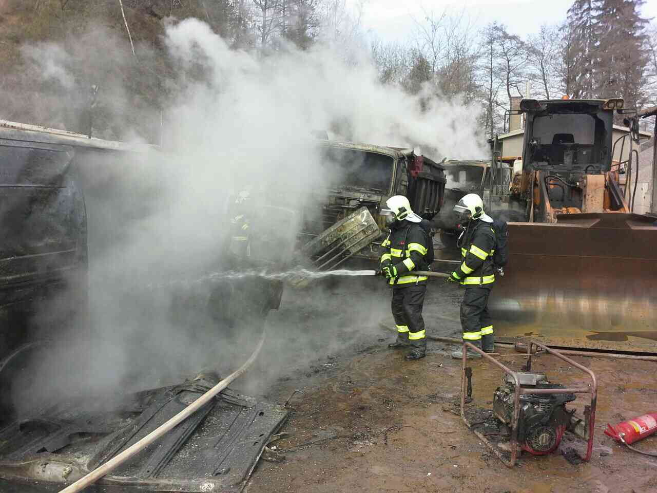 Přivolané jednotky hasičů (profesionální z Chrudimi a dále dobrovolné z Nasavrk, Chrudimi, Slatiňan a Žumberku) po chvíli likvidovaly nejen požár dodávky, ale i dvou nákladních vozů značky Tatra a nakladače. Vytékající nafta z dodávky totiž stekla pod auta a zapálila je.