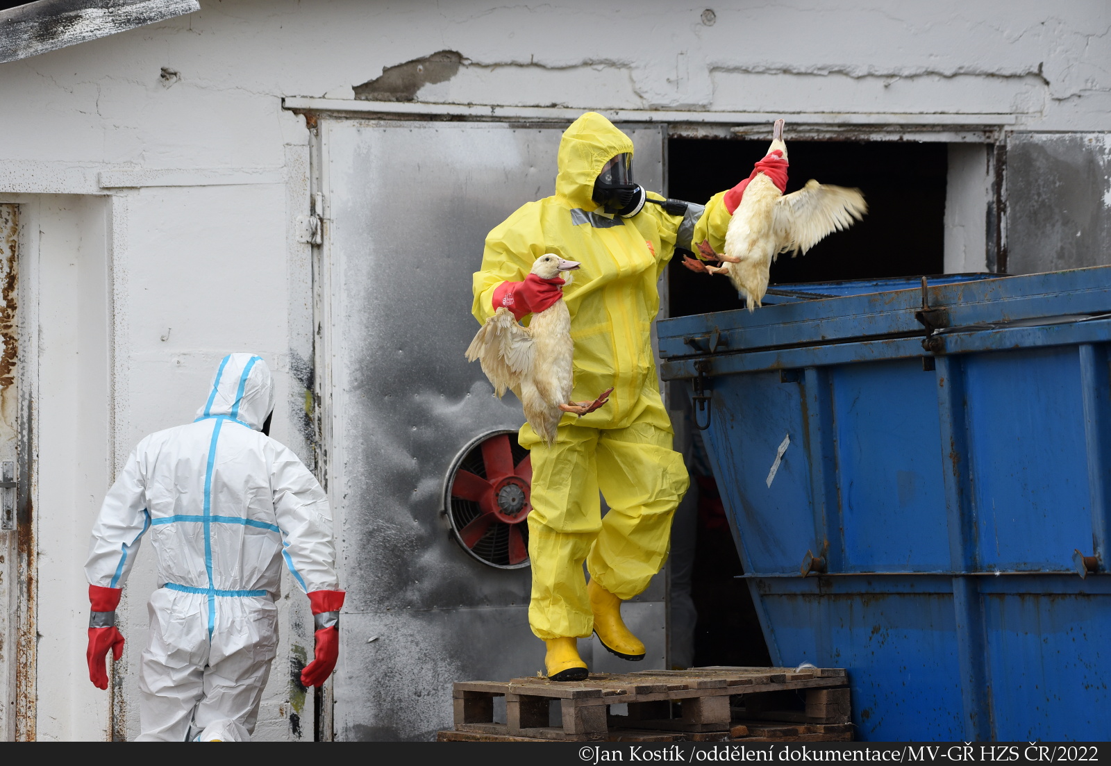 Ke konci ledna jsme v Lipolticích likvidovali 3 500 kachen, které postihla ptačí chřipka, přesněji virus H5N1. Na místě zasahovalo 5 jednotek hasičů (profesionální z Pardubic, Holic a Přelouče a dále dobrovolní hasiči z Lipoltic a Městského obvodu I. Pardubice). Téměř třicet hasičů likvidovalo kachny ze dvou hal zhruba 7 hodin. Podívejte se na naše video.
