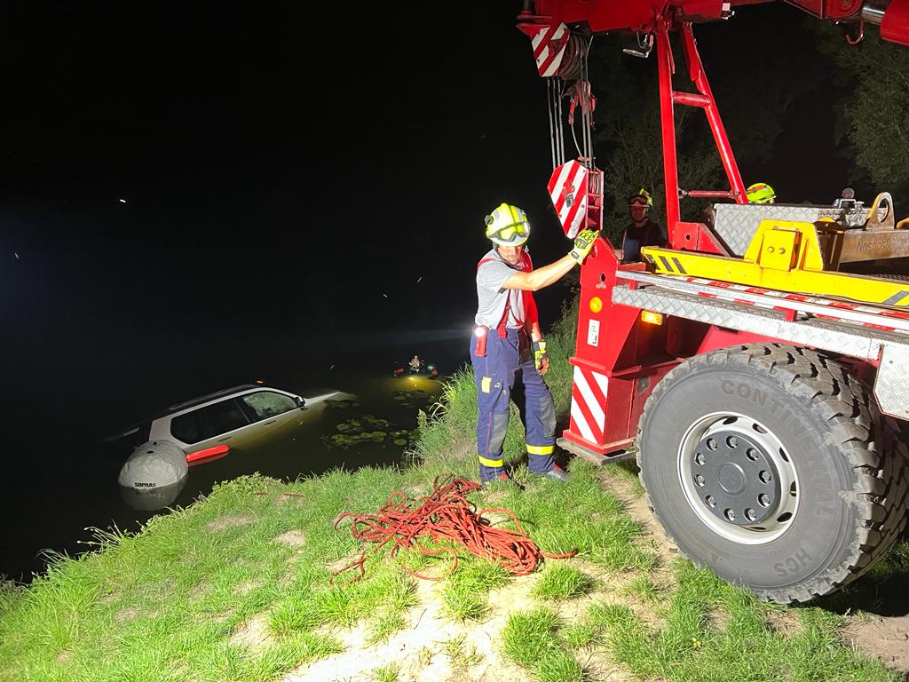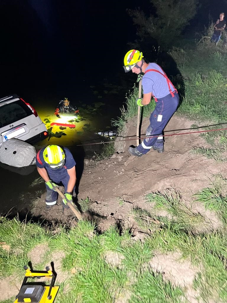 Ve večerních hodinách v 21:37 hod. jsme jeli k vodě zase. Vyjížděla profesionální jednotka HS Přelouč, CHS Pardubice a opět potápěčská skupina. Tentokrát to bylo k Labi, části obce Opočínek. Zde nepozornému rybáři sjelo auto do vody, když si se synem chtěli posvítit na vydařený úlovek. Auto odcestovalo po proudu asi 70m a tam se potopilo do hloubky přibližně 5m. Naši potápěči označili vozidlo bójkou, za pomocí vaků jej vyzvedli na hladinu a pak začala složitá vyprošťovací akce. Nejprve jsme museli vozidlo přemístit ke břehu proti proudu, což jsme vyřešili pomocí lana, kladky a navijáku. Nepřístupný břeh jsme si museli upravit pomocí ženijního nářadí a motorových pil. Pote jsme mohli auto zapřáhnout za naviják jeřábu a konečně ho dostat ven. Teď to bude mít majitel vozidla jak z filmu Jáchyme hoď ho do stroje – vysušení, vylovení, odbahnění…no však to znáte.