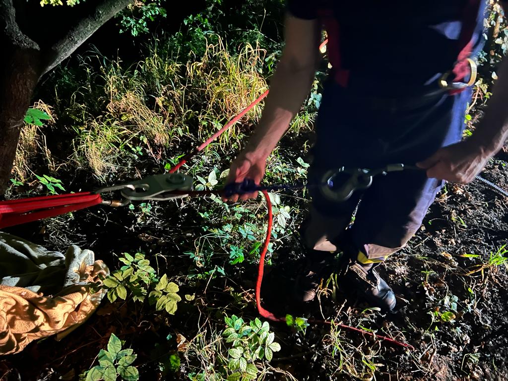 Mezitím jsme si odskočili do Mělic u Přelouče, kam vyjížděla profesionální jednotka HS Přelouč. Zde nám bylo ohlášeno vozidlo hrozící převrácením. S nepozorným řidičem se zde utrhla část nezpevněné cesty. Auto jsme vyprostili za pomocí vysokotlakých vaků a nepoškozené vrátili majiteli.