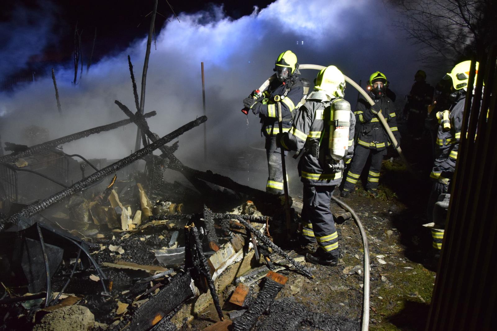 Při příjezdu hasičů byla již kolna plně zasažena požárem. Jednalo se o objekt o rozměrech zhruba 3 x 12 m.