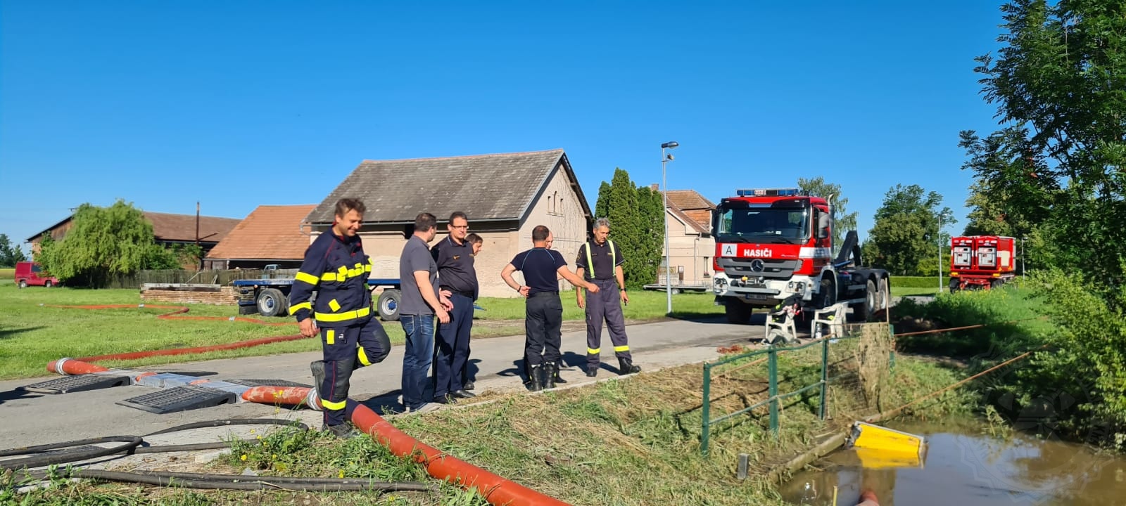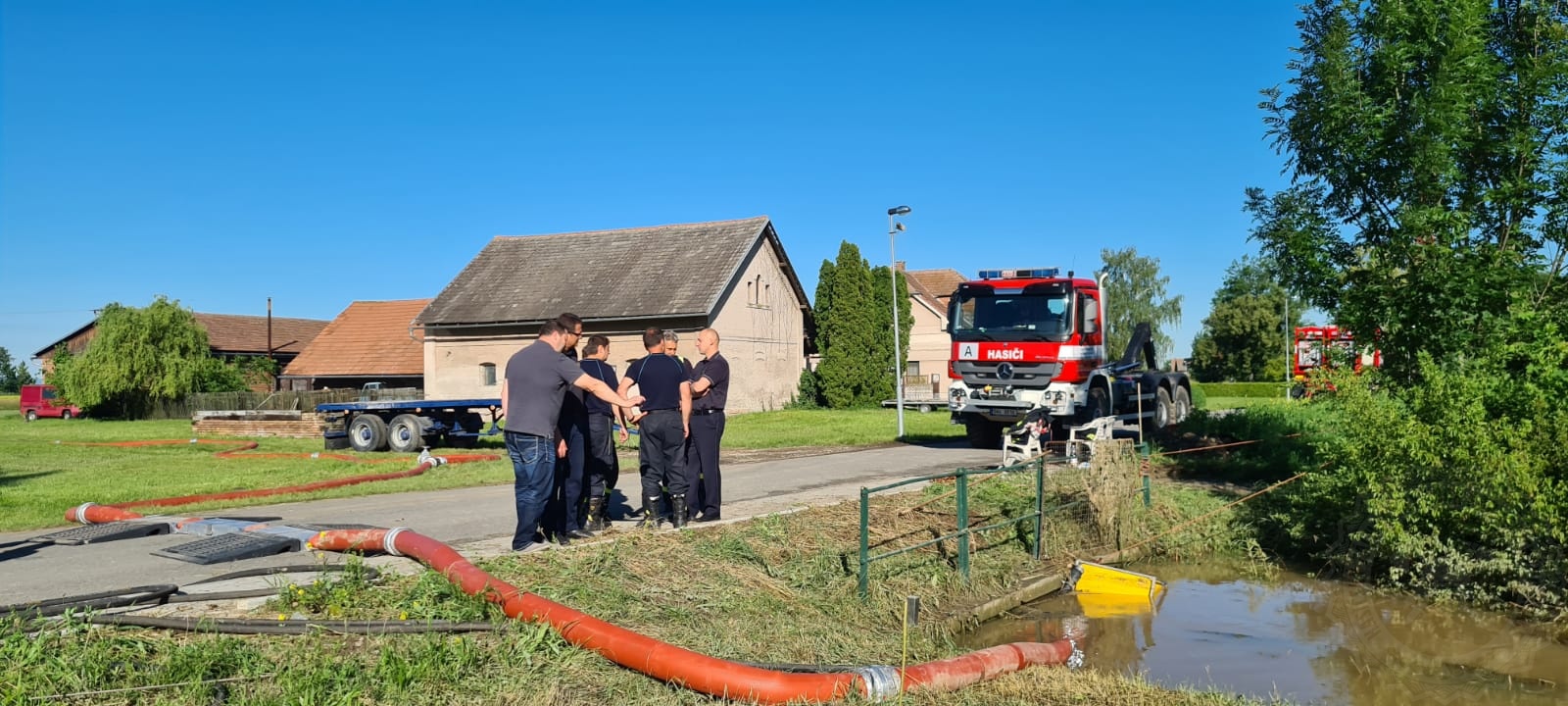 Nejhorší situace je stále v Dolní Rovni, kde zasahují hasiči. S odčerpáváním vody pomáhala v Dolní Rovni a Komárově i jednotka ze sousedního Hradce Králové, a to s velkokapacitním čerpadlem SOMATI. Situaci společně přímo na místě řešili i ředitelé obou krajů brig.gen. Ing. František Mencl z HZS Královéhradeckého kraje a plk. Mgr. Aleš Černohorský, z HZS Pardubického kraje spolu s místostarostou Dolní Rovně Ing. Milošem Horákem.