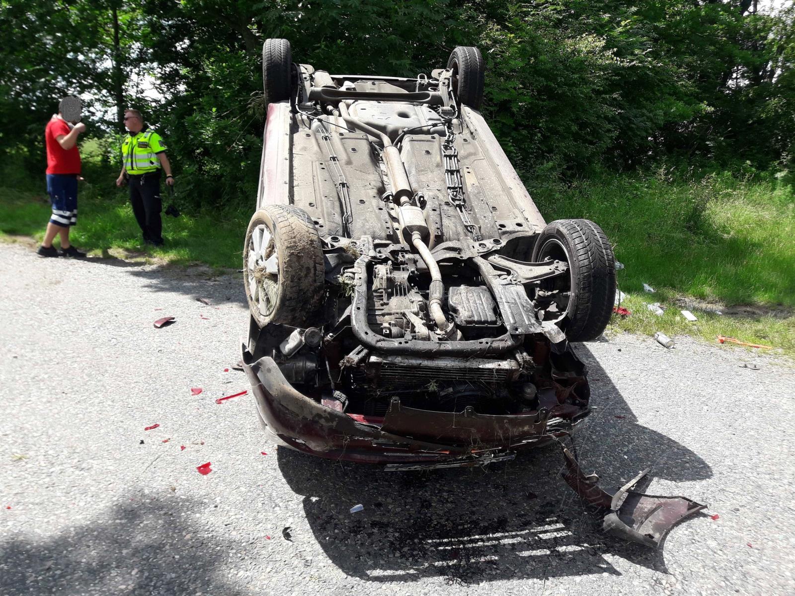 Vozidlo skončilo na střeše