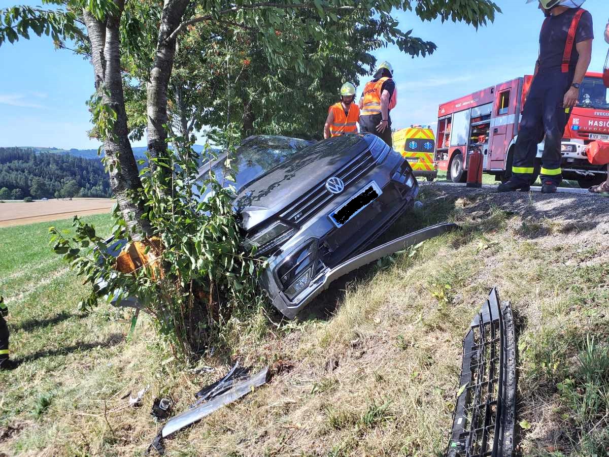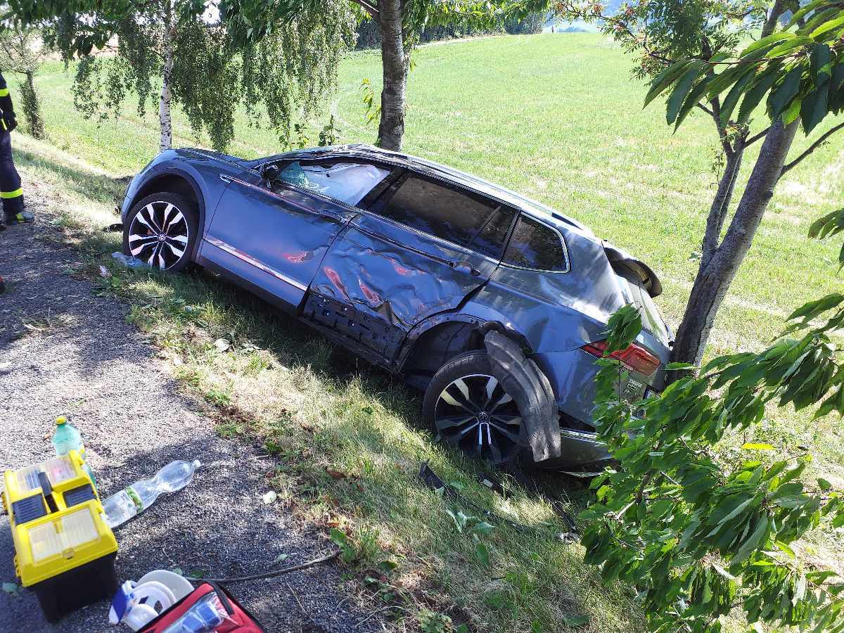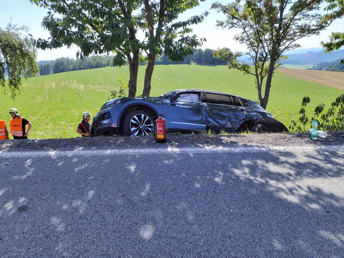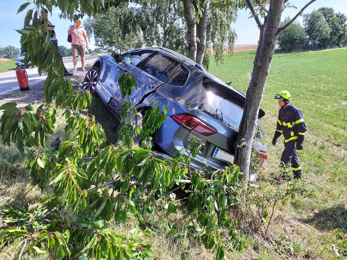 V obci Bystřec na Orlickoústecku zasahovali 4. 8. 22 hasiči ze stanice Žamberk a JSDH Jablonné nad Orlicí. Po 16hodině vyjížděly jednotky k nahlášené nehodě osobního vozidla, jehož řidič skončil svou jízdu mimo komunikaci. Na místě nehody se nacházel osobní automobil Wolksvagen Tiguan, který při nehodě sjel pod úroveň vozovky, zůstal nakloněný na pravý bok a zaklíněný mezi stromy. Ve vozidle byly aktivovány airbagy a řidič, který jel ve vozidle sám, měl jen lehká zranění. Hasiči mu poskytli předlékařskou pomoc. Po průzkumu místa zásahu nebyly nalezeny žádné unikající provozní náplně. Hasiči  zajistili automobil  proti požáru a po vyšetření nehody Policií ČR a odvezení  vozidla odtahovou službou se vrátili na základny.
