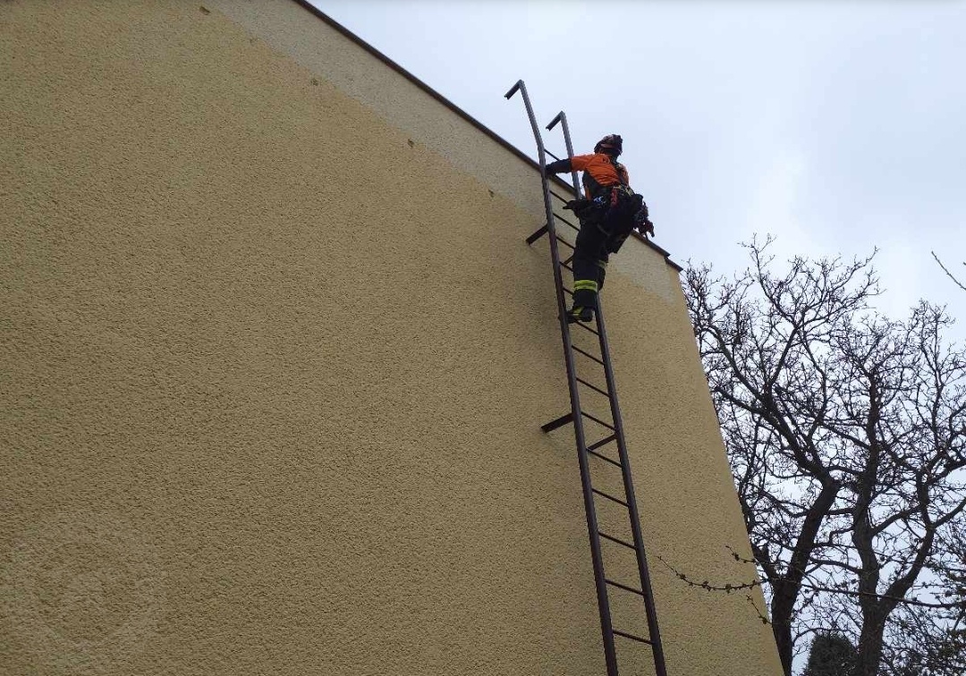Vystresovanému muži se závratí z výšek pomohli ze střechy hasiči