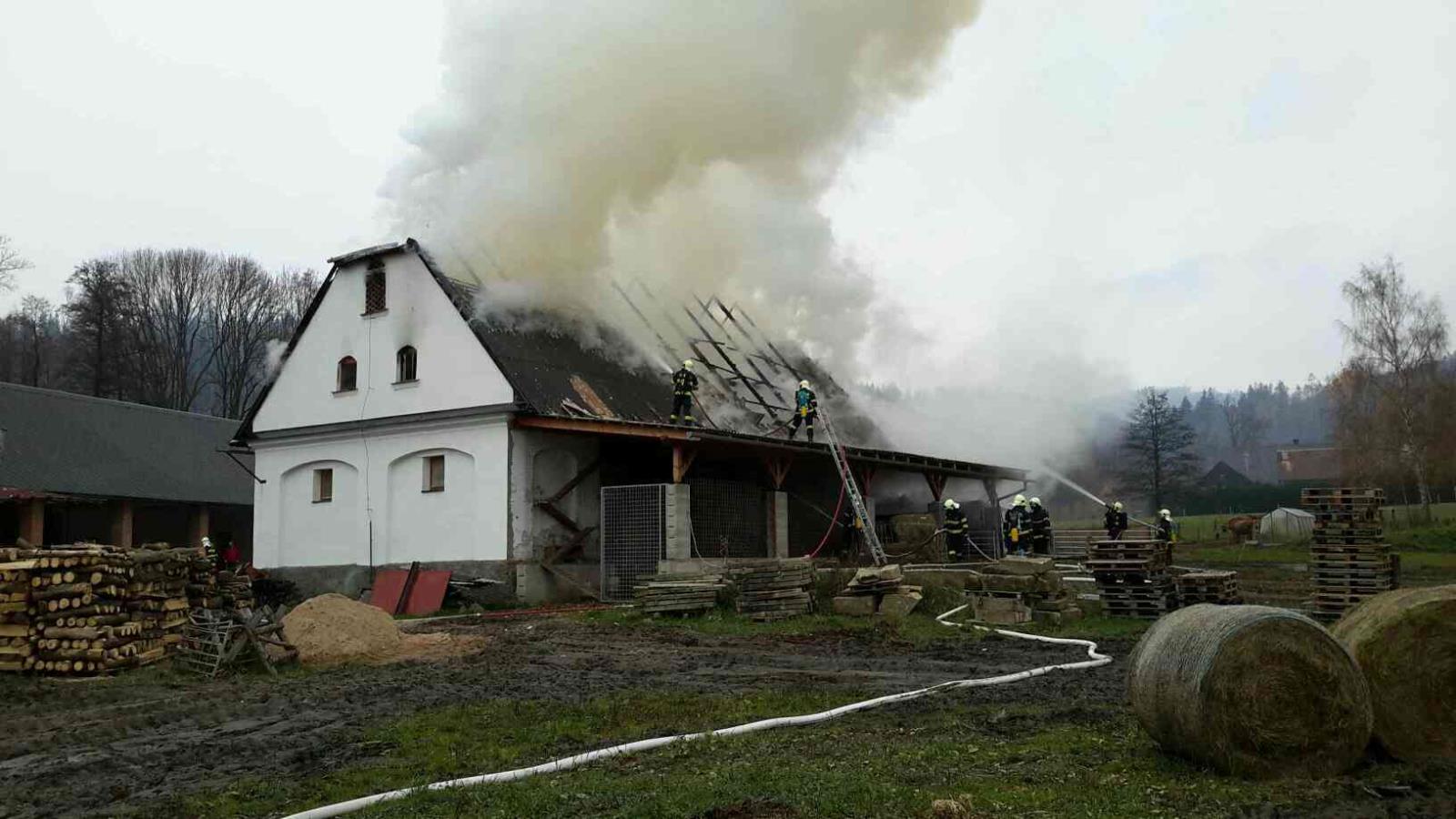 Vznícení udírny zapříčinilo požár stodoly, kterou plameny zcela zničily