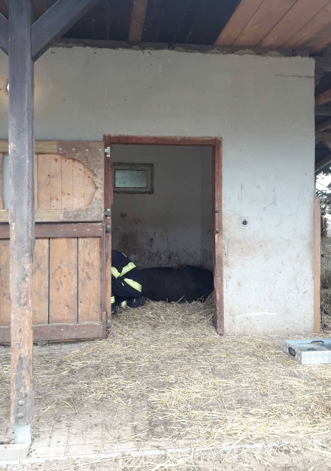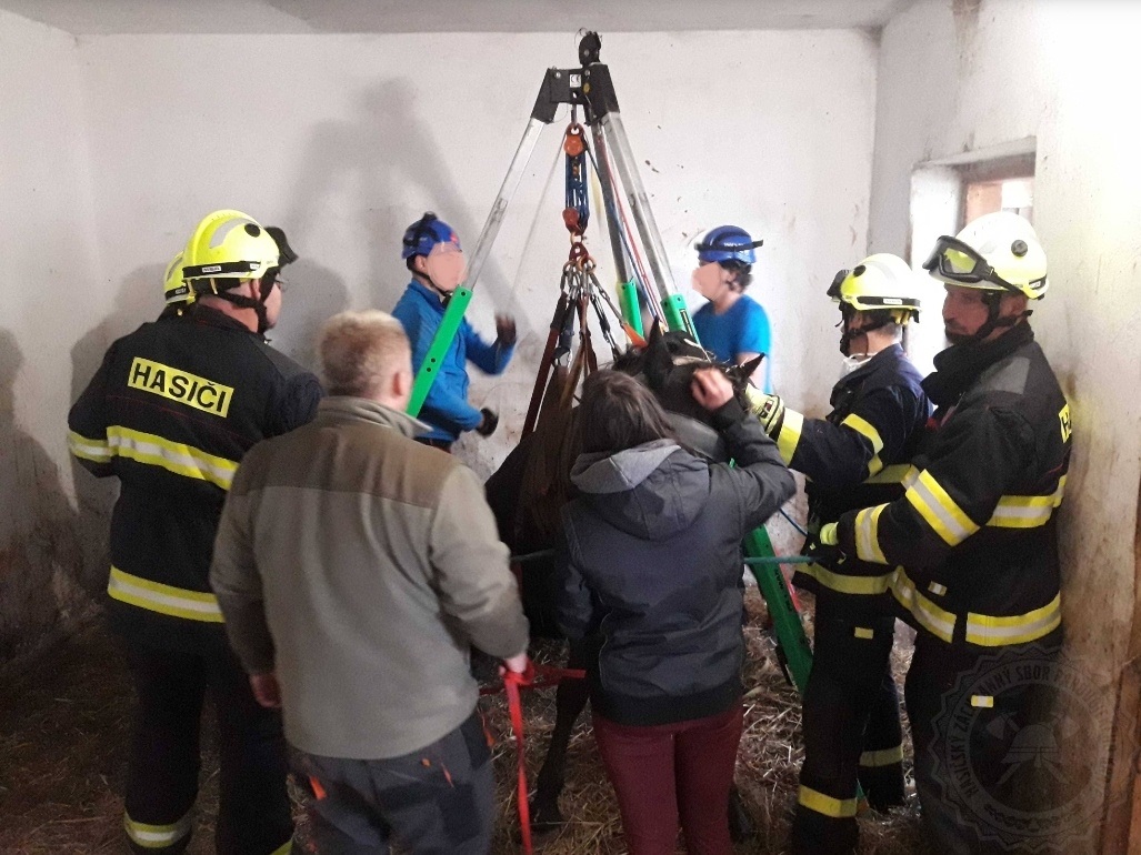 Dvě profesionální jednotky hasičů z Moravské Třebové a Svitav a dobrovolná jednotka z Jevíčka zasahovaly ve čtvrtek 7. října celé dopoledne v Biskupicích. Bezvládně ležící osmiletou klisnu vážící asi 600 kilogramů ve stáji bylo nutné postavit zpět na nohy. Klisna má čtyřměsíční hříbě a v současné době poraněnou zadní levou nohu, se kterou se již měla léčit. Ovšem majitelům kůň do rána ve stáji lehl.