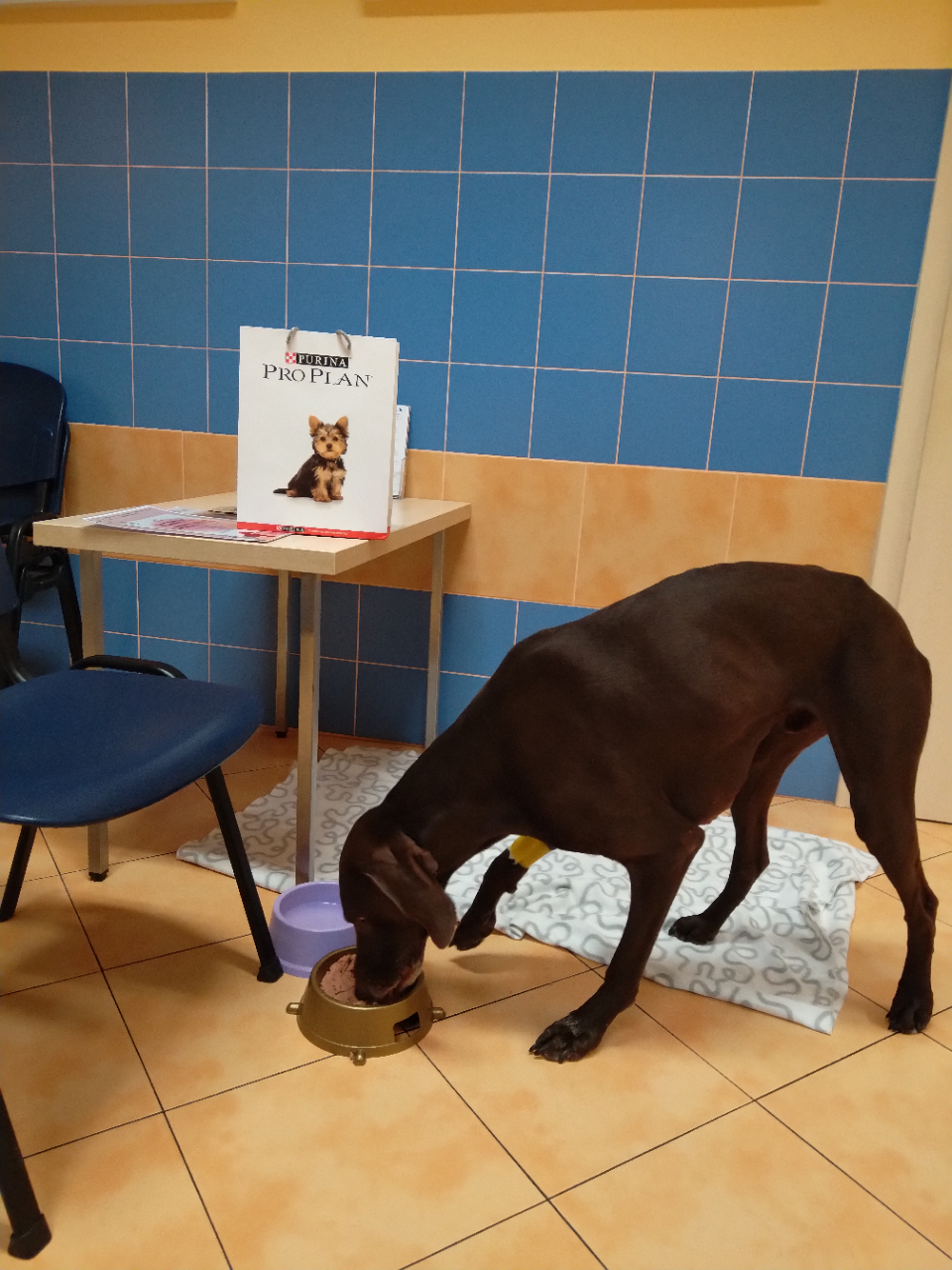 Darren po odběru krve musel ještě chvíli vydržet v klidu. A nebojte, dostal i odměnu, kterou si určitě zaslouží – pro nabrání síly masovou konzervu a misku plnou vody, aby doplnil tekutiny.