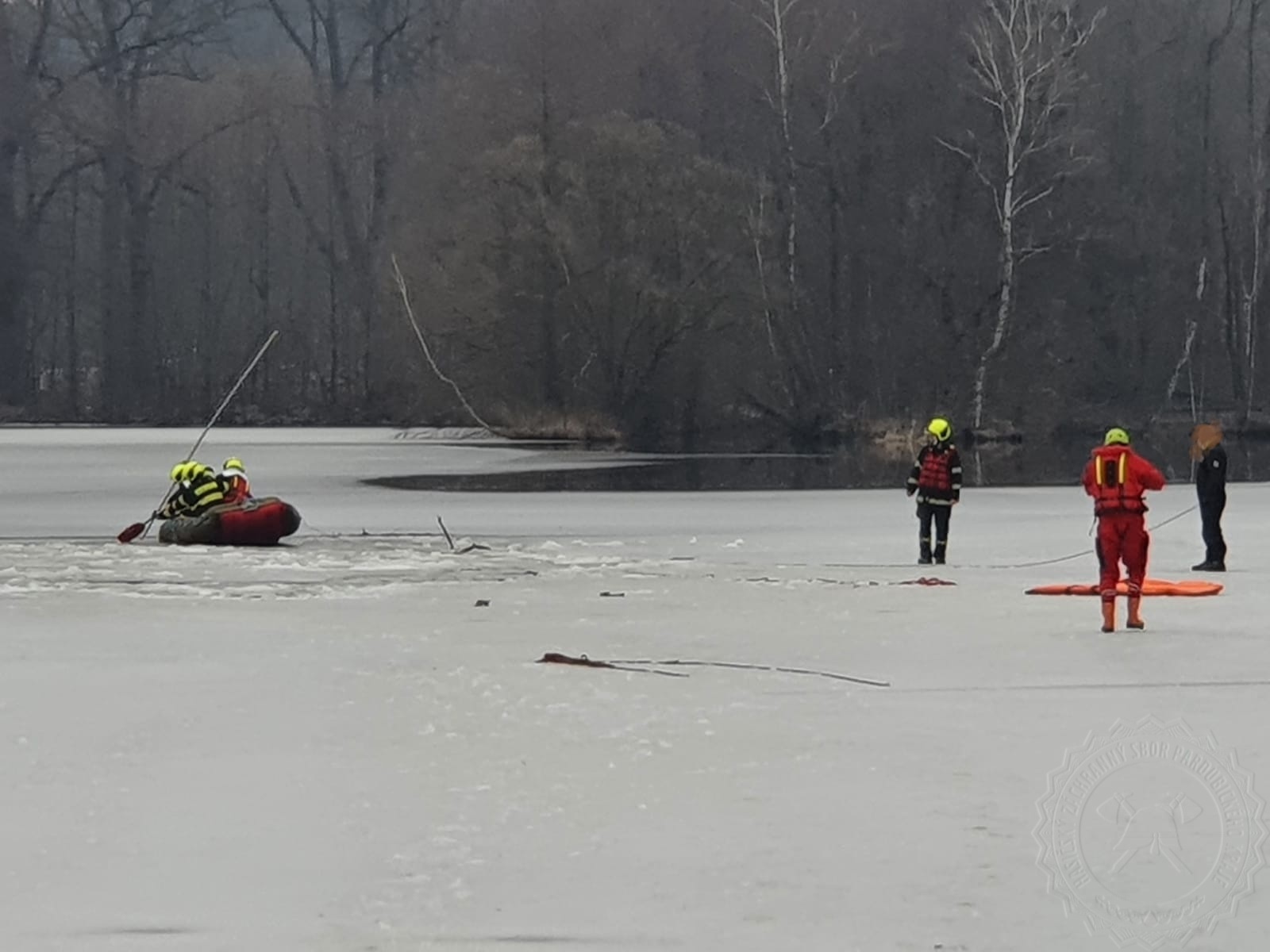 Dvě holčičky měly vidět, jak se pod třemi chlapci probořil led. Hasiči, kteří dorazili k události, použili k zajištění místa nafukovací člun a vrhli se do ledové vody hledat tři děti. Postupně pod ledovou krustou byly nalezeny všechny tři děti, které byly ihned předány posádkám zdravotnické záchranné služby. Záchranáři dětem po příjezdu poskytli potřebnou lékařskou pomoc.