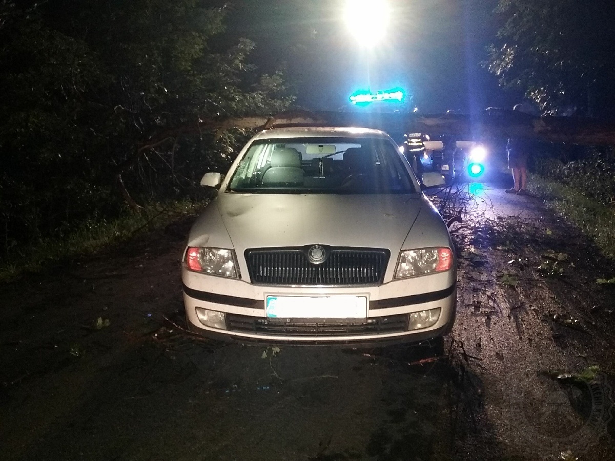 Jen před 23. hodinou hasiči zasahovali v Živanicích, kde na projíždějící osobní automobil spadl strom. Událost naštěstí byla bez zranění. Poškozen byl pouze automobil. Spadlý strom byl odstraněn.