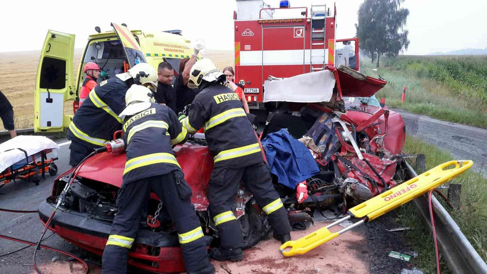 Ze zdemolovaného auta museli řidiče vyprostit hasiči