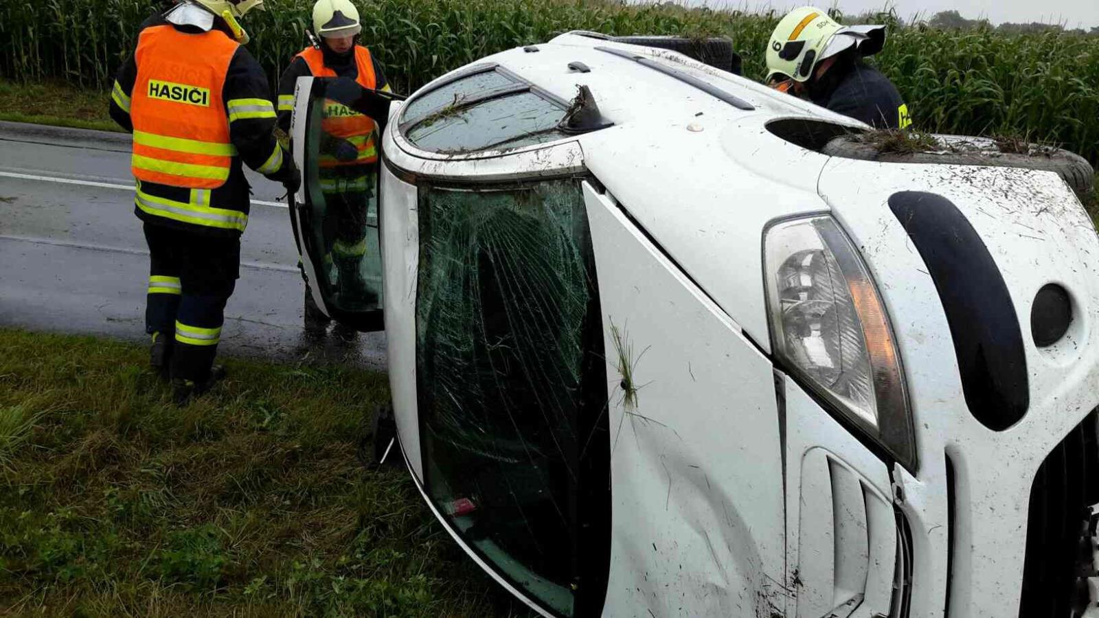 Zraněná řidička skončila s vozidlem převráceným na bok v příkopu u Dašic na Pardubicku
