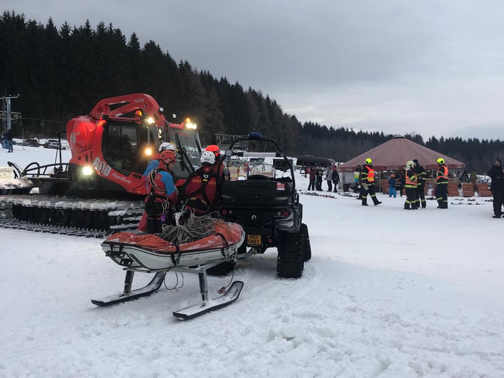 Do Červené Vody, Mlýnického Dvora, vyjížděli ve čtvrtek 17. ledna 2019 , v 12.53 hodin, profesionální hasiči ze Svitav, Ústí nad Orlicí, Králík, Pardubic, ale i hasiči ze sousedního Olomouckého kraje ze stanic Šumperk a Olomouc a dále dobrovolní hasiči z Červené Vody. Strom tady totiž spadl na lano sedačkové lanovky, a to zhruba v její polovině. Lanová dráha vede z Mlýnického Dvora do Bukové Hory v Čenkovicích. Na svazích hory je vybudován moderní lyžařský areál, který byl v tu chvíli plný lyžařů. Obsluha lanovky nejprve odřezala strom a pokusila se lano nahodit zpět, aby mohla v nouzovém provozu svézt lidi do bezpečí. To se ale nepodařilo. Těsně před 14 hodinou byla zahájena evakuace všech lyžařů uvězněných na lanovce. Na pomoc byly povolány dva vrtulníky. Jeden letěl z Brna a druhý z Prahy. Z počátku nebyly přesné informace o počtu uvězněných lyžařů. Hlášeno bylo až 200 osob. Po upřesnění uvízlo na lanovce 71 lyžařů. Hasiči se postupně rozdělili na jednotlivé úseky. Vylezli na sloup a pomocí lanového setu se přiblížili k lyžařům na sedačce. Zde si vytvořili bod. Ustrojili vždy po jednom lyžaři do evakuačního trojúhelníku a spustili lyžaře postupně dolů. A takto to pokračovalo dále až do posledního lyžaře. Na místě zasahovala pochopitelně Horská služba z Čenkovic, Jeseníků a Říček. Při zásahu na lanovce ve zmrzlém prostředí jde o minuty. Největší problém je čas. I dojezd jednotek je samozřejmě problém. Rozhodují klimatické podmínky. Lidé, kteří na lanovce sedí, jsou oblečení na lyžování, nikoliv na sezení. Ale lanovka je v tomto případě moderní a vyhřívaná. V 15.09 hodin na místo přiletěl první vrtulník. V 15.18 hodin druhý vrtulník. V té době bylo evakuováno asi 7 osob. Na místě nevládla žádná panika. Podle našich informací se jednalo o moderní vyhřívanou lanovku a osoby byly v pořádku. Nemáme také žádné informace o zranění. Záchrana probíhala oběma vrtulníky a také ze země. Tady byli hasiči i horská služba rozděleni na jednotlivé úseky a jak postupně jednotky dojížděly, tak obsazovaly části lanovky. S vyproštěním se začínalo v horní části. Byl tedy dán evakuační plán. Mezi uvězněnými lyžaři byly i děti. Evakuace byla ukončena v 16.17 hodin. Nakonec velitel zásahu vydal rozkaz k provedení ještě jedné kontroly celé lanovky, aby se ubezpečil, že skutečně na lanovce nikdo není. Zdroj: Vendula Horáková, tisková mluvčí – HZS Pardubického kraje Foto: HZS Pardubického kraje FOTOGALERIE