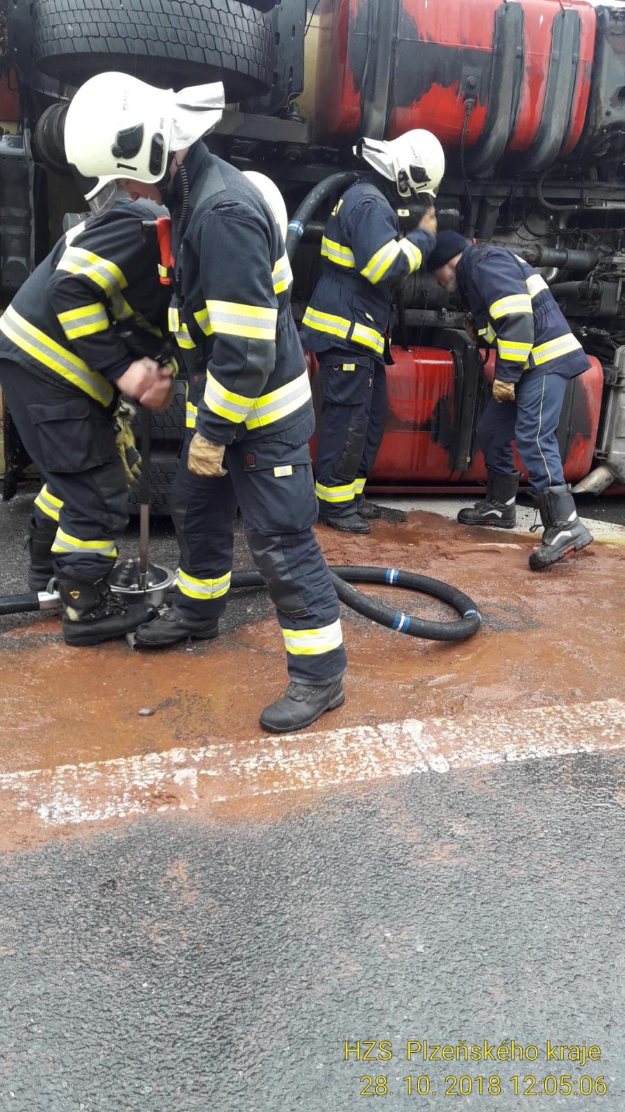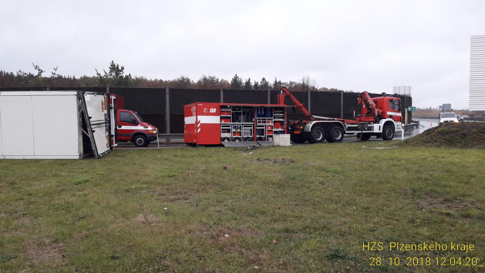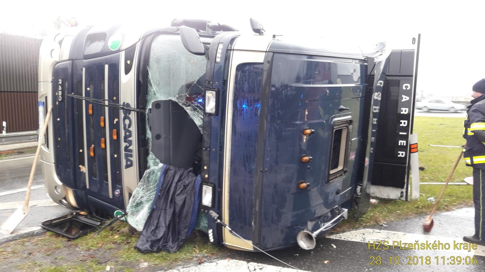 V neděli 28.10. 2018 před dvanáctou hodinou dopoledne vyjeli hasiči ze stanic Slovany a Košutka k dopravní nehodě kamionu na sjezdu z přivaděče ke Starému Plzenci.